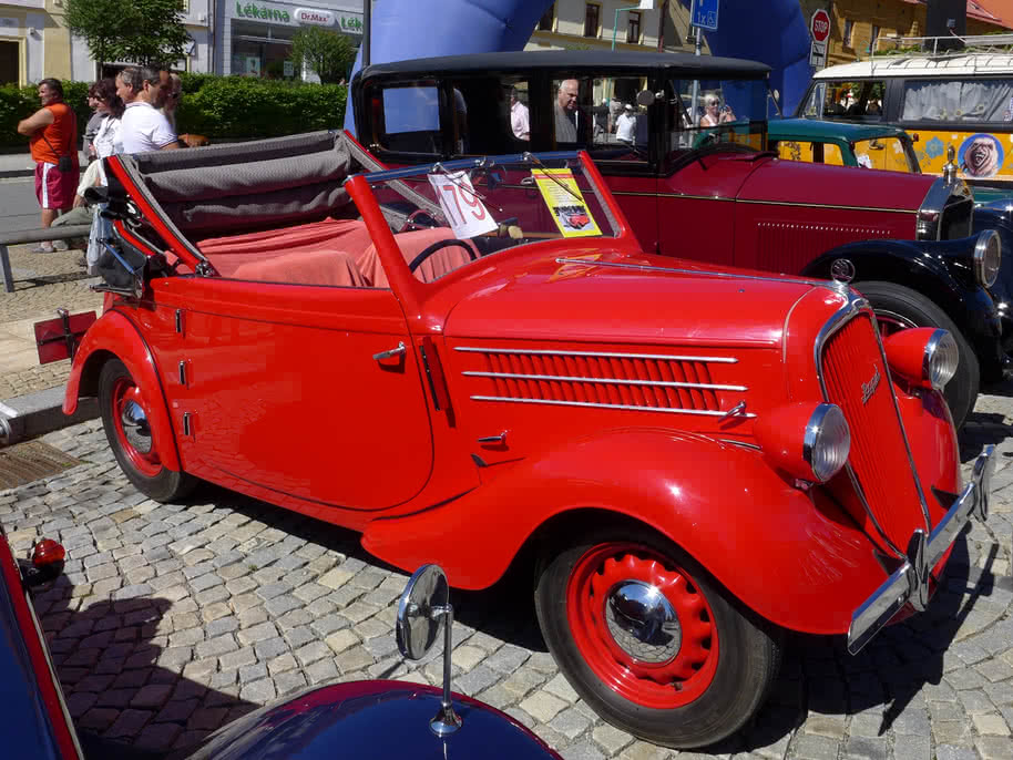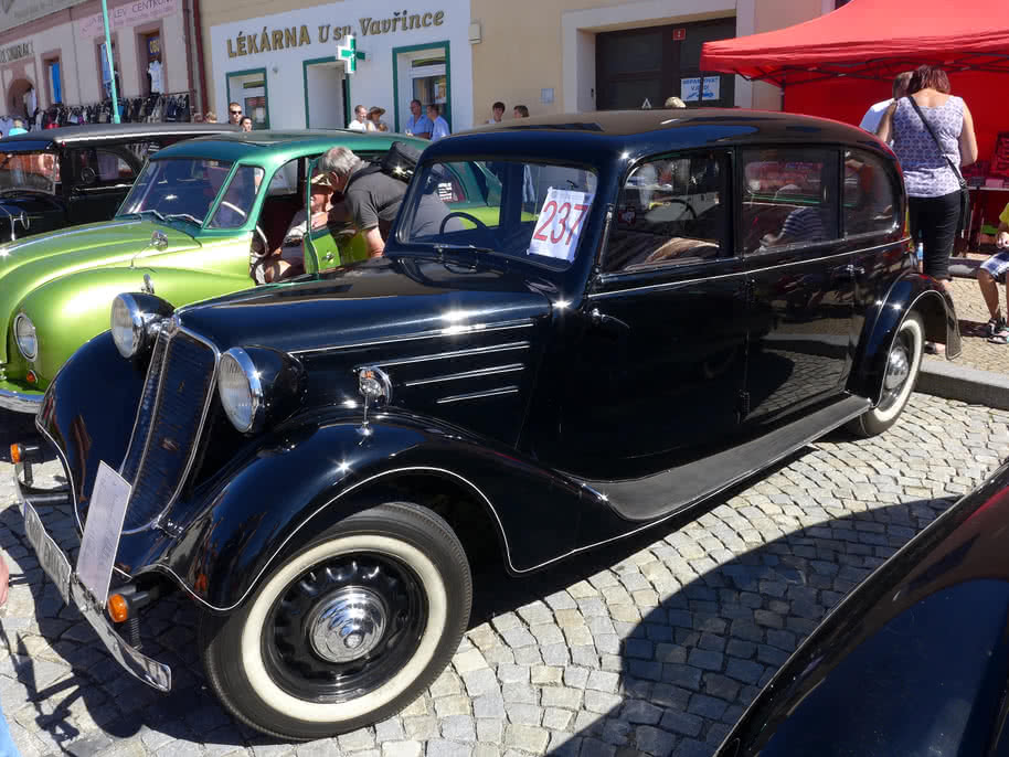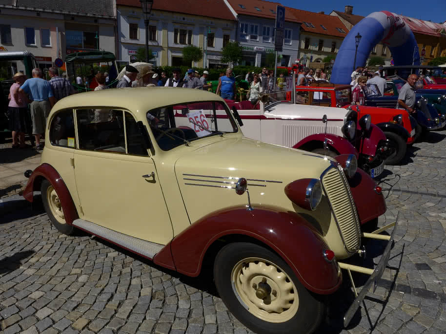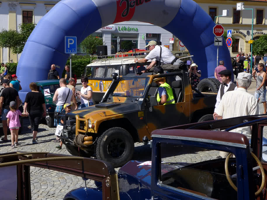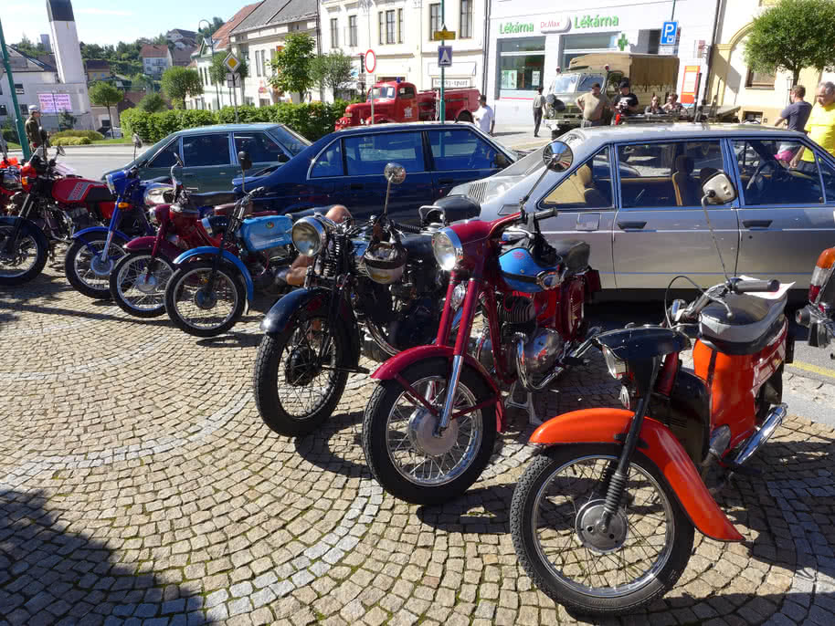 Ve 13:00 se začalo startovat na vyjížďku do Svratky. Přednostně měla startovat předválečná vozidla z dolní části náměstí. Jako první projel Mates na svém chopperu následován předválečnými Škodovkami a párem Tater. Nikdo další se ke startu moc neměl, všichni se ještě kochali. Připuštěna tedy byla vozidla bez rozdílu věku a hned se začala tvořit pěkná fronta.