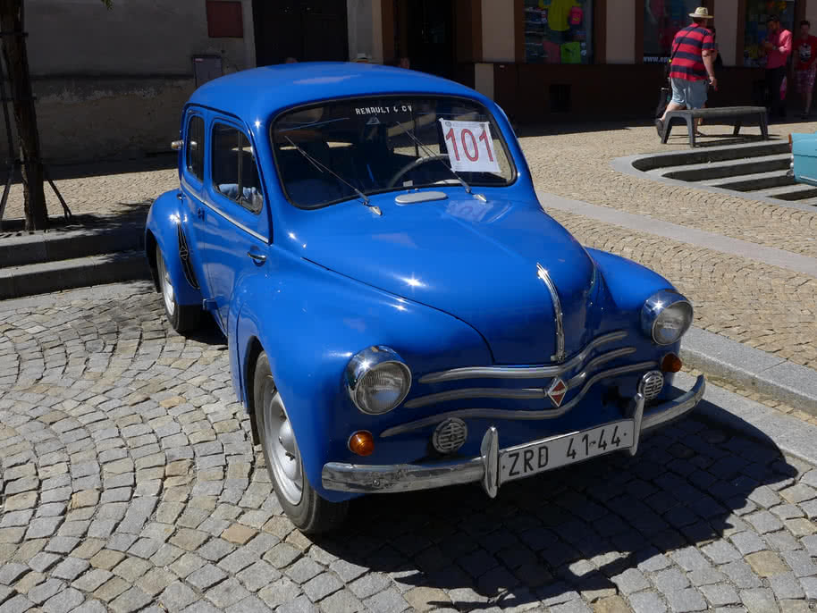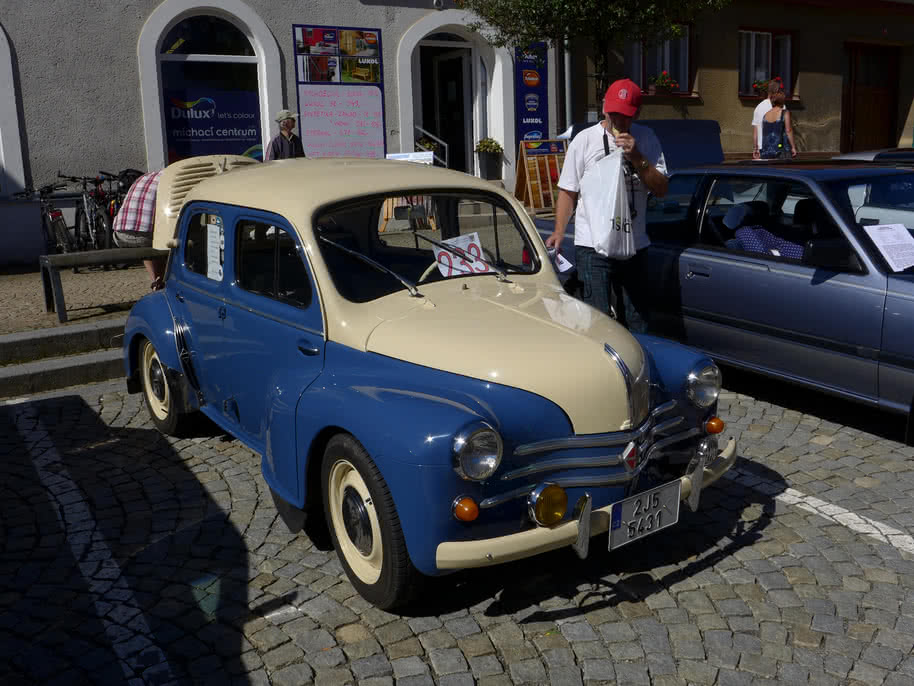 Renaulty 4CV letos v celkovém počtu tři kusy – modrý exemplář z roku 1958 byl zde na srazu prvně.