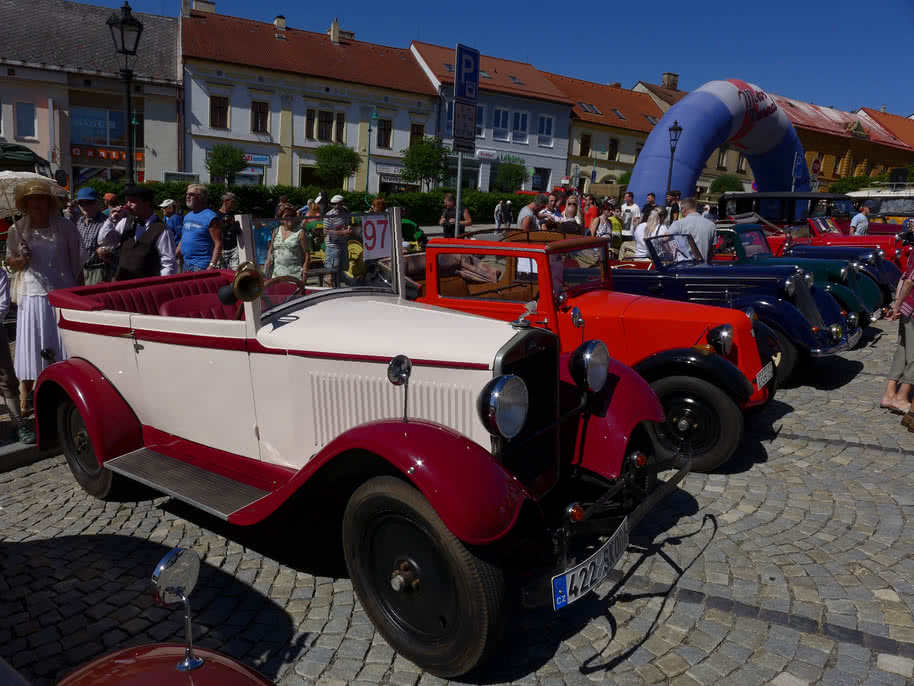 Do 10 hodin se náměstí zcela zaplnilo. Jen fronta přijíždějících vozů se stále držela na konstantních 4-8 čekajících vozidlech. Poslední účastníci byli zaregistrování okolo 12. hodiny ... a to se pro stání využil i amfiteátr v dolní části náměstí. Tímto tempem bude příští rok potřeba i plácek před kostelem.