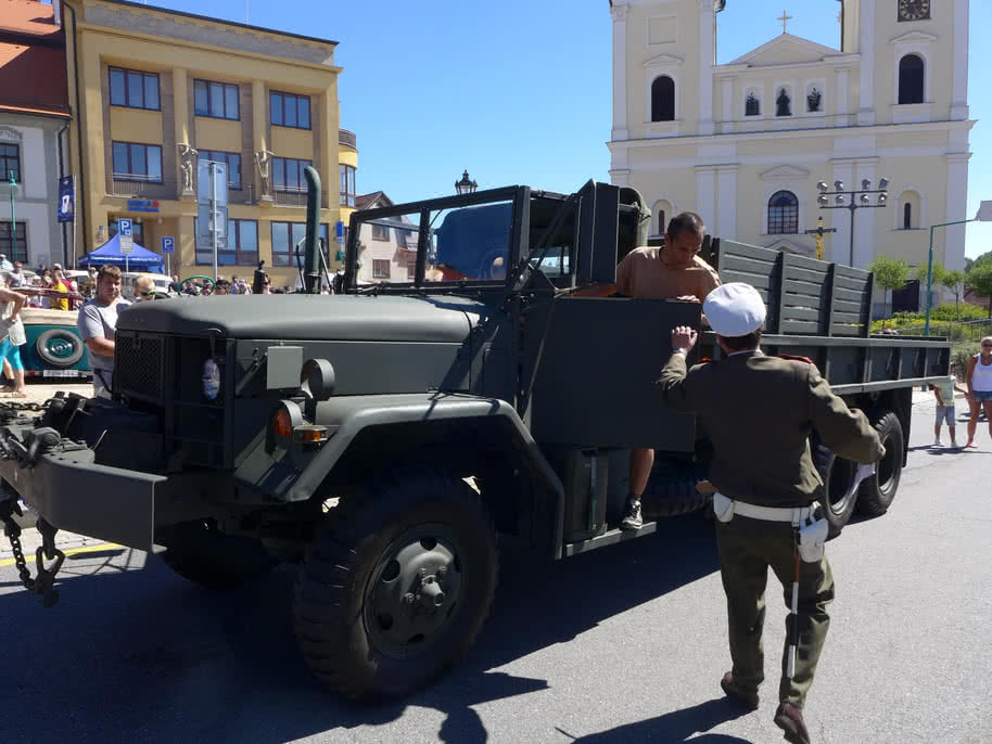 Na sobotní večer bylo na bystřickém náměstí plánováno promítání filmu v rámci akce kinematograf bratří Čadíků. VIP hosty z vedení kinematografu měly přivézt vybrané historické Tatrovky, aby se tím ještě umocnila sváteční atmosféra tohoto okamžiku. Převoz herců a souvisejících pohlavárů však připomínal šaškárnu ze starých socialistických časů. Aby lidé mávající odjíždějící koloně od ubytovny na Zemědělské škole měli čas dojít k amfiteátru ve spodní části náměstí (což je cca 500m chůze), měla kolona historických Tater zastavit a počkat na rohu. František rázně odmítl simulovat poruchu a tak místo toho projížděla kolona Bystřicí křížem krážem, až nakonec dorazila k amfiteátru, kde už opět ukázkově jako za dob hlubokého socializmu vítal mávající dav přijíždějící VIP hosty.