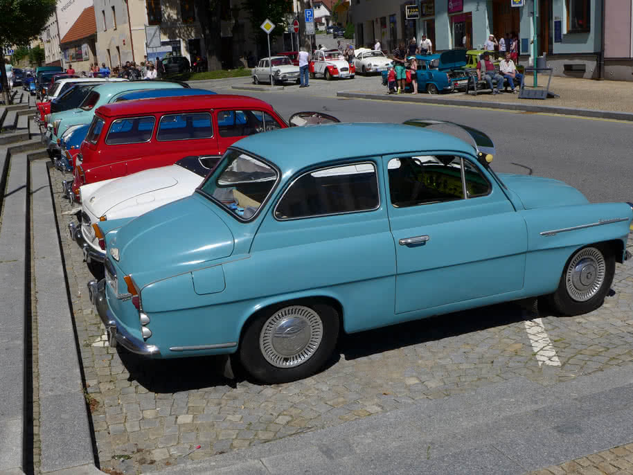 Nepřeberné množství československých poválečných vozů nejčastěji zastoupených značkou Škoda