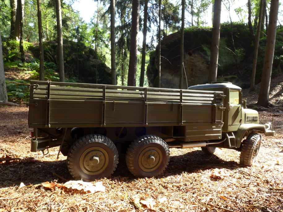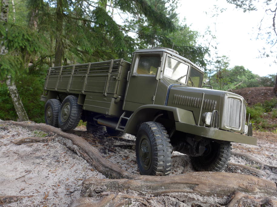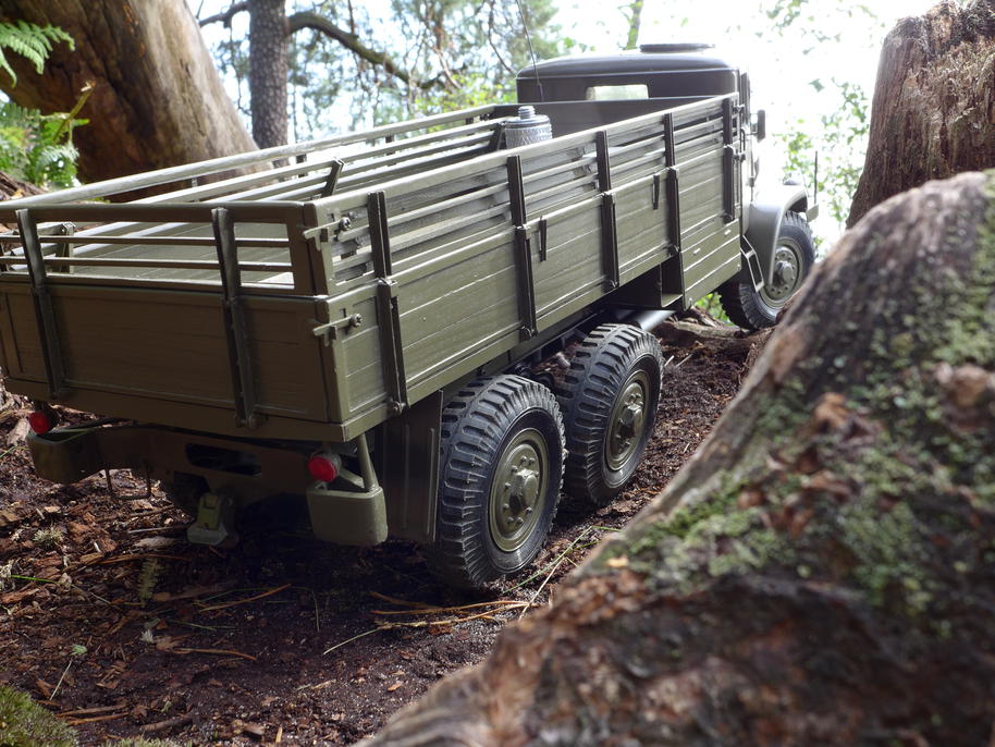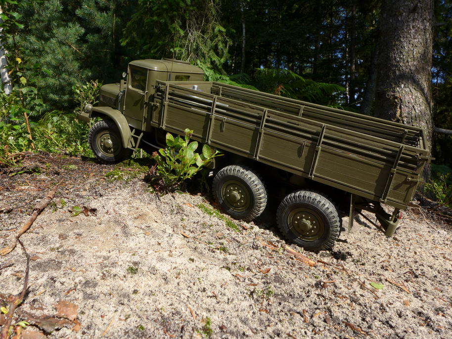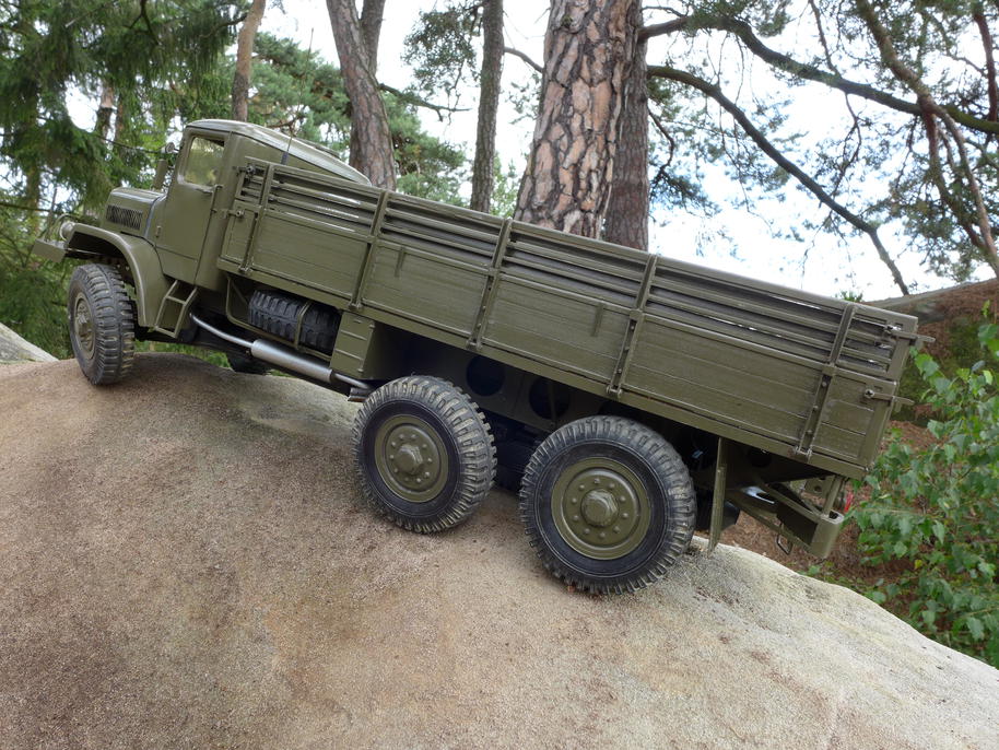 Po demontáži kloubu je patrné značné opotřebení vlivem nesprávné geometrie pohonu. K tomu zřejmě značně přispělo občasné vysouvání hřídele z převodovky, než jsem tomu zamezil zajištěním vnějšího ložiska. Nyní k tomu ještě přibylo uchycení předního konce převodovky do přední rozvodovky (ve skutečnosti to je podobně, jen převodovka T128 je proti modelové převodovce delší a je přišroubována k rozvodovce v prostoru mezi jejím zadním koncem a polonápravou). Pokud se obě úpravy osvědčí, budou nastříkány černou barvou, aby nerušily vzhled modelu.