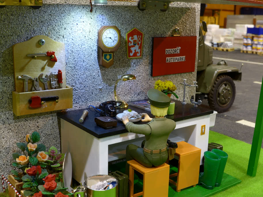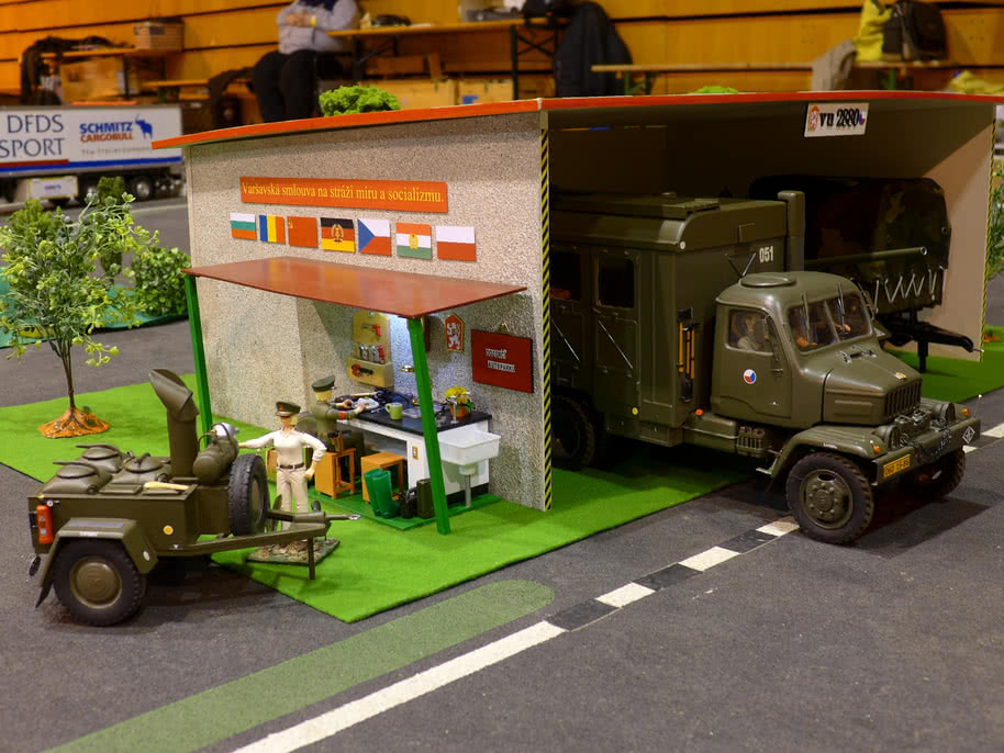 Soudružka vojanda tu nabízela horký guláš z vojenské kuchyně. Jen si nejsem jist, zda tlak 475kPa předepsaný na blatníku kuchyně odpovídá skutečnosti. Dozorčí autoparku si více hleděl svého žvance než svěřených vozidel. Klidně nechal stát Pragu V3S i s připojenou kuchyní tak diletantsky, že nebyla za garáží vidět a předkem končila uprostřed silnice. Tím bezpochyby nesl svůj díl viny na následné kolizi s projíždějícím kamionem.