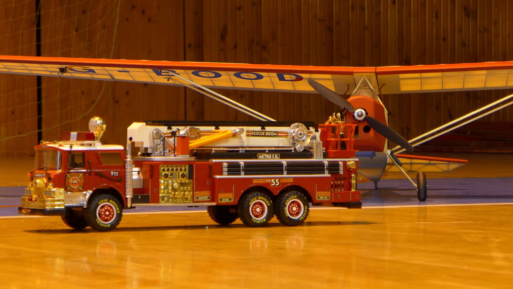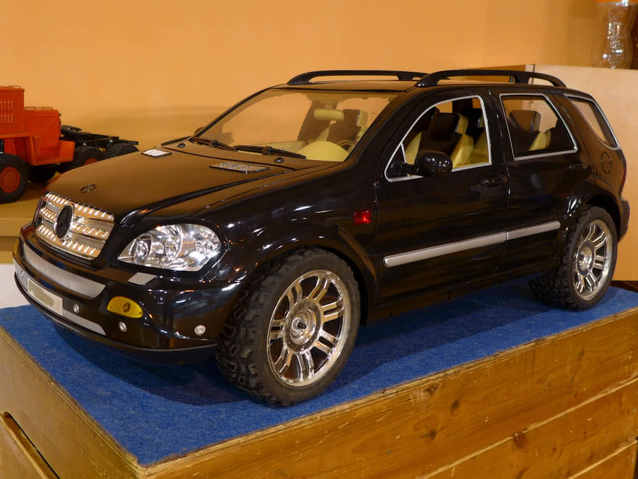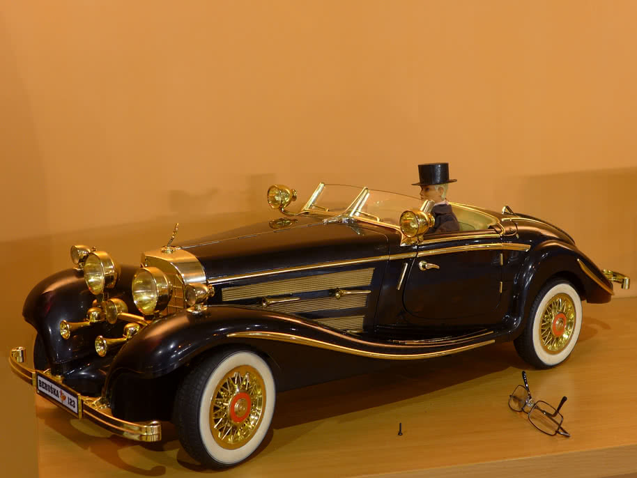 Kromě letadel tu byly dva "maximodely" Mercedes Benz. Prý je velký problém sehnat figurku dámy důstojného vzhledu do kabrioletu. Řidič tak projížděl svůj zvláštně poskakující vůz zatím osamocen.