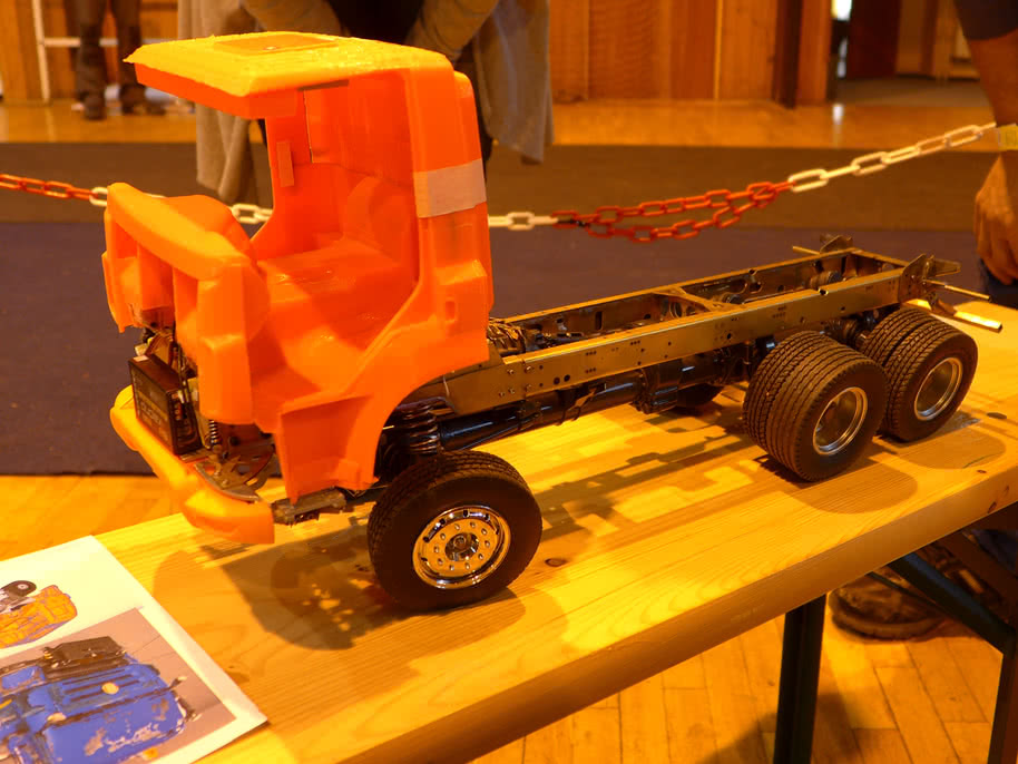 Zde je náš "óbr-projekt" – budoucí Tatra Phoenix EURO6 (MX-13) s ověřovacím výtiskem kabiny z oranžového PLA. Momentálně se trápím s kroucením výtisků z ASA. 3D model je již nějakou dobu kompletní a připraven k finálnímu tisku.