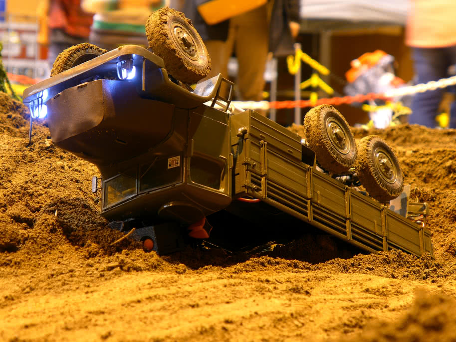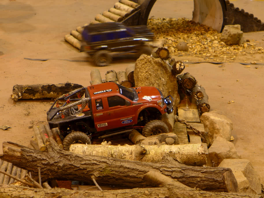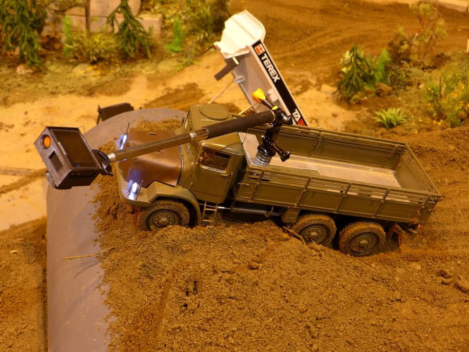 Bohužel, nebyl to jediný případ kolize – opět se mezi stavební technikou objevily rychlé expediční speciály řízené dětmi, což pro ostatní modely představuje velké nebezpečí. Apeluji proto na ostatní kolegy modeláře – pakliže berete své děti na akci a dáte jim do ruky nějaký model (nebo podobnou rychlou hračku), vysvětlete jim, že není normální bourat do ostatních vozidel. Pokud vaše děti nemají dost zkušeností a sebekázně k ovládání svěřeného stroje, nedávejte jim ho do ruky!