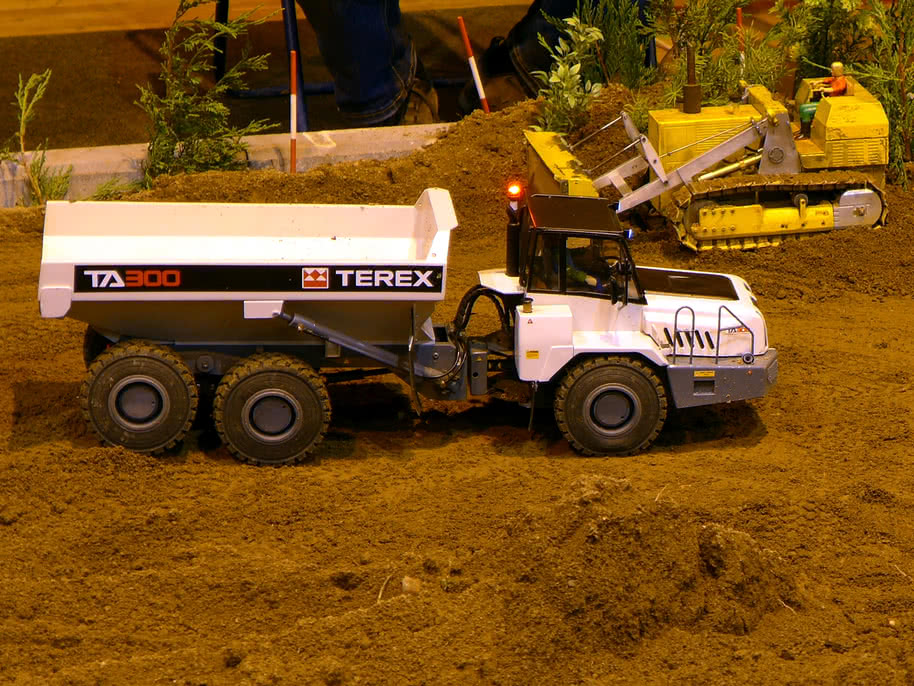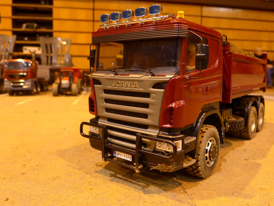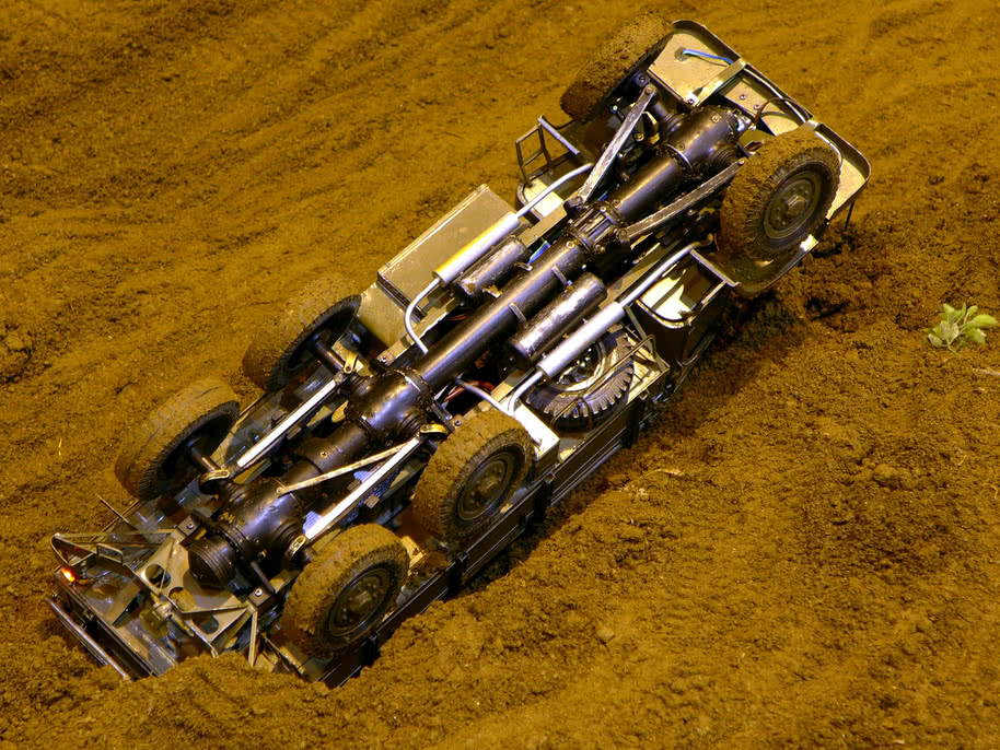 Zajímavý prototyp Liebherr 732 Litronic – nosič kontejnerů do málo únosného terénu. V podstatě se prý jedná o prodloužený buldozer. Mimochodem, při jízdě po parketu haly tahle věc "dupe" tak, že se podlaha chvěje ještě dva metry od něj :) . Nejedná se o žádnou stavebnici, model je stavěný od začátku. Detaily stavby lze shlédnout nejlépe ve vlákně na Tamiya fóru .