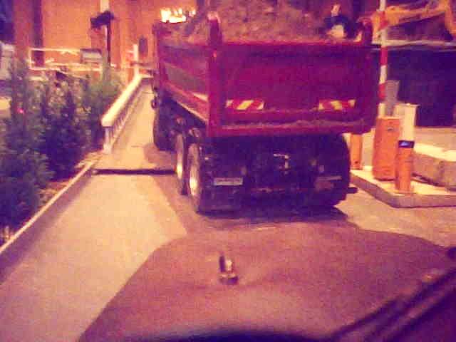 Odvážný plán se za 7 hodin podařilo splnit na 110%, "naše" hromádka byla během dne odstěhována o dva metry vedle a transformována do silničního náspu. Ke konci výstavy byl násep již dostatečně dimenzován tak, že jej mnohá vozidla dokázala překonat i směrem vzhůru. Aktivních sklápěček bylo opravdu hodně, na naložení se stála fronta i v okamžicích, kdy zároveň nakládal bagr a nakladač.