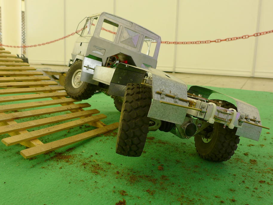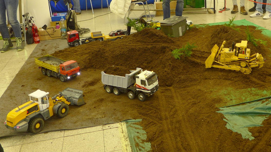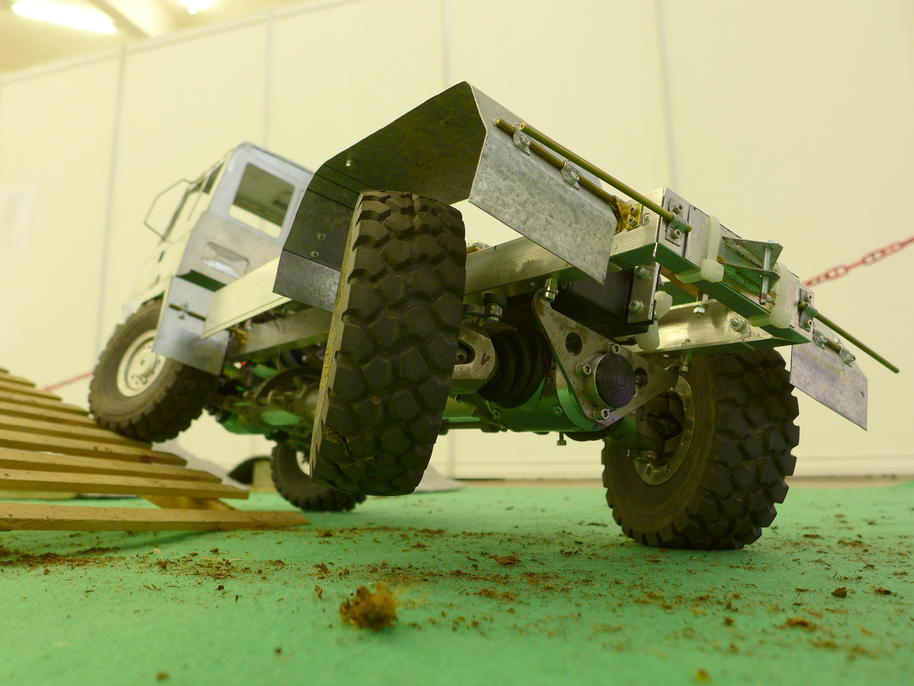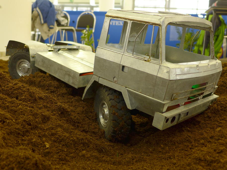 Ostatně, dlouhá léta mohly s námi v terénu desetiny normálně dovádět. Pak se v tomto měřítku rozmohly rychlé hračky za pár korun a v rukou nezkušených pilotů začaly kolem sebe rozsévat zkázu. V Olomouci jsem byl poprvé svědkem vykázání Tatry 815 AWS v měřítku 1:10 z našeho modelového prostředí (ale ne proto, že by bylo model nebezpečný ostatním). Při sobotních konzultacích s kolegy jsem vytušil, odkud vítr fouká. A jestli jsem to správně pochopil, cílem klubu FMST (Funkční Modely Stavební Techniky) je zvýšit realistické chování modelů na staveništi, dodržovat jízdu po vyhrazených cestách, neničit vyšperkovaný terén a také nemíchat měřítka modelů, což je zřejmě jednou z podmínek získání pozvánky na Modelbau Messe v Rajchu.