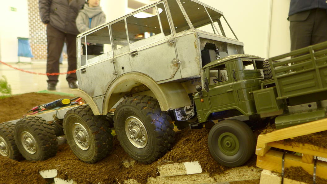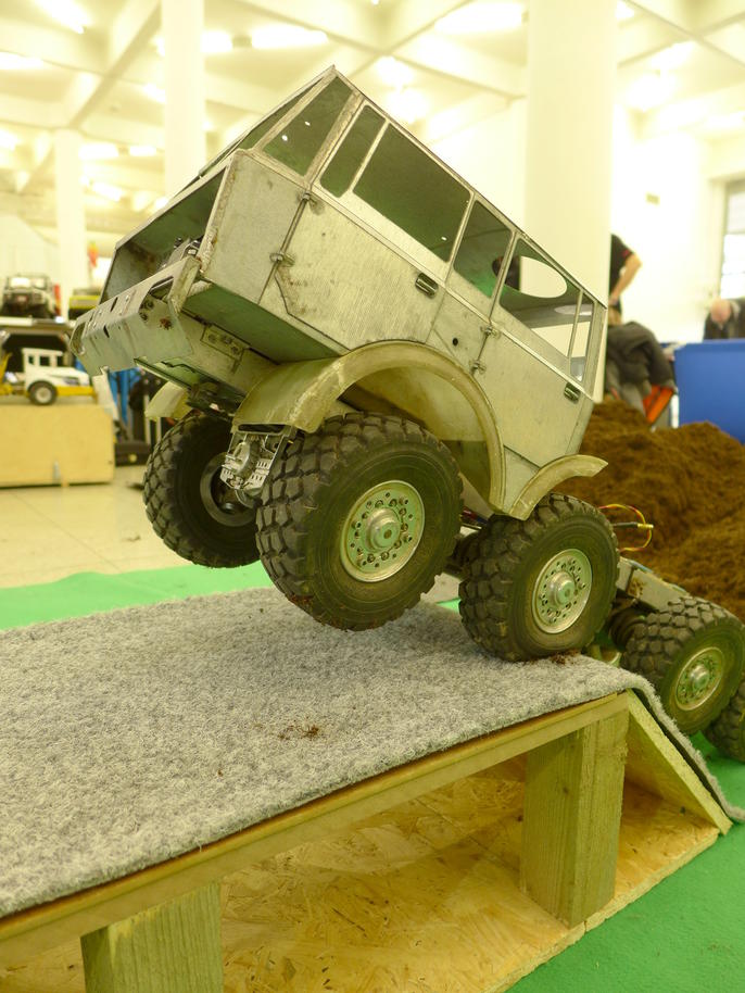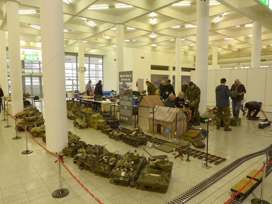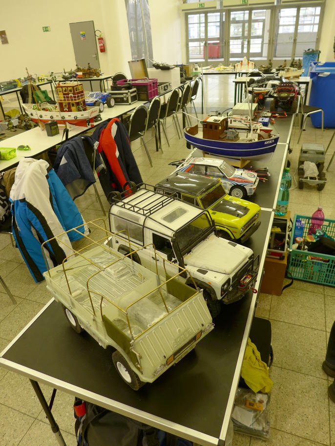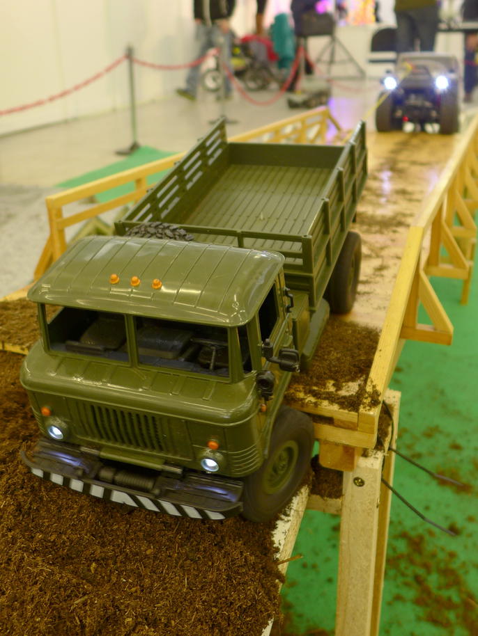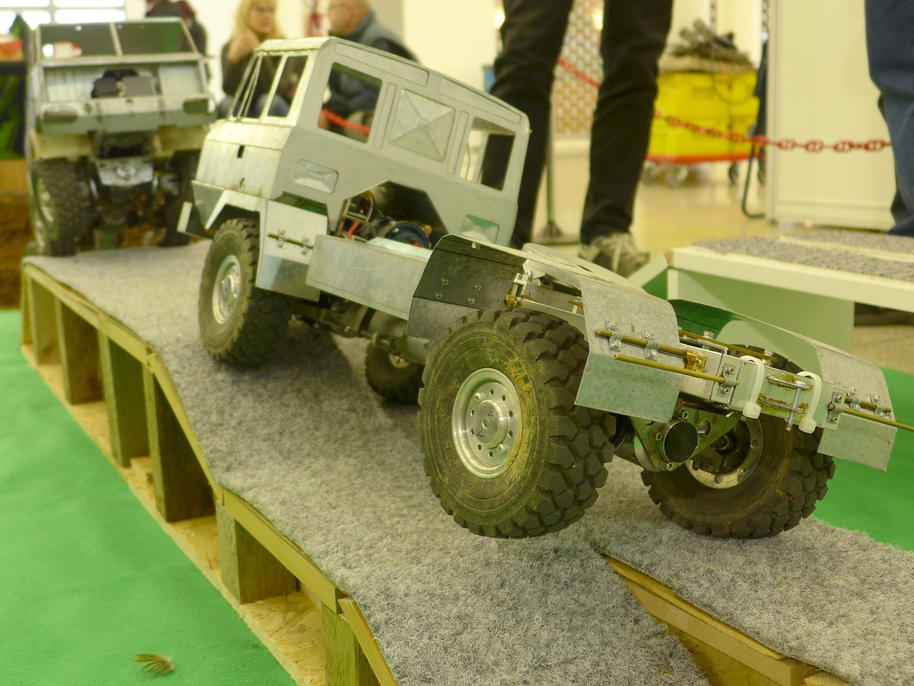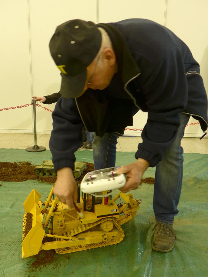 Původně prý byla slíbena celá polovina pavilonu C. V úterý těsně před akcí se náš hlavní organizátor Olda od BVV dověděl, že dostaneme odhadem jen asi 7x10m – dohromady pro všechnu stavební techniku, velké modely druhoválečné vojenské techniky, modelovou železnici, lodě a trialové a expediční speciály v měřítku 1:10! Stěží jsme modely nastavěli do vymezeného prostoru se vším souvisejícím zázemím.
