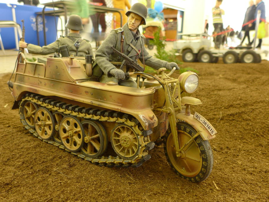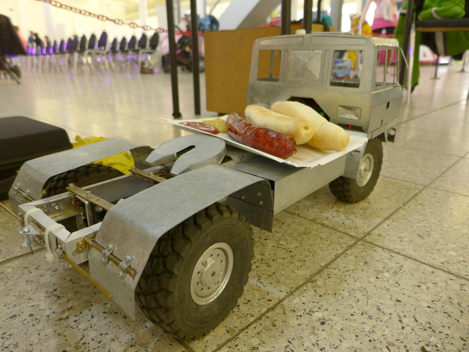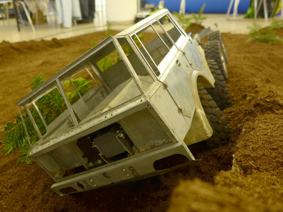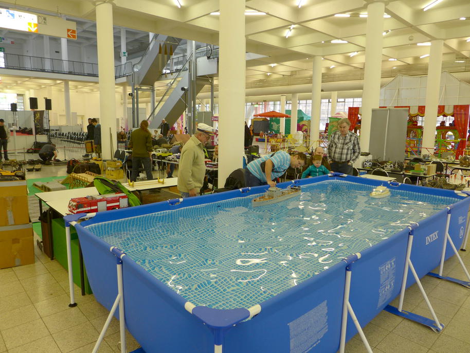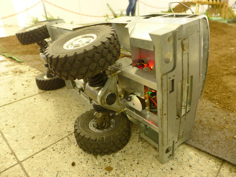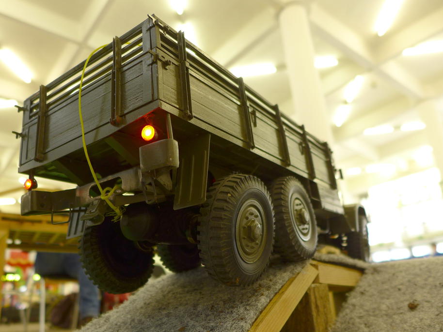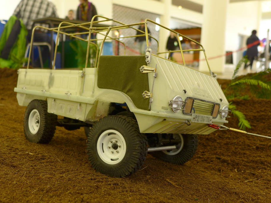 Původně prý byla slíbena celá polovina pavilonu C. V úterý těsně před akcí se náš hlavní organizátor Olda od BVV dověděl, že dostaneme odhadem jen asi 7x10m – dohromady pro všechnu stavební techniku, velké modely druhoválečné vojenské techniky, modelovou železnici, lodě a trialové a expediční speciály v měřítku 1:10! Stěží jsme modely nastavěli do vymezeného prostoru se vším souvisejícím zázemím.