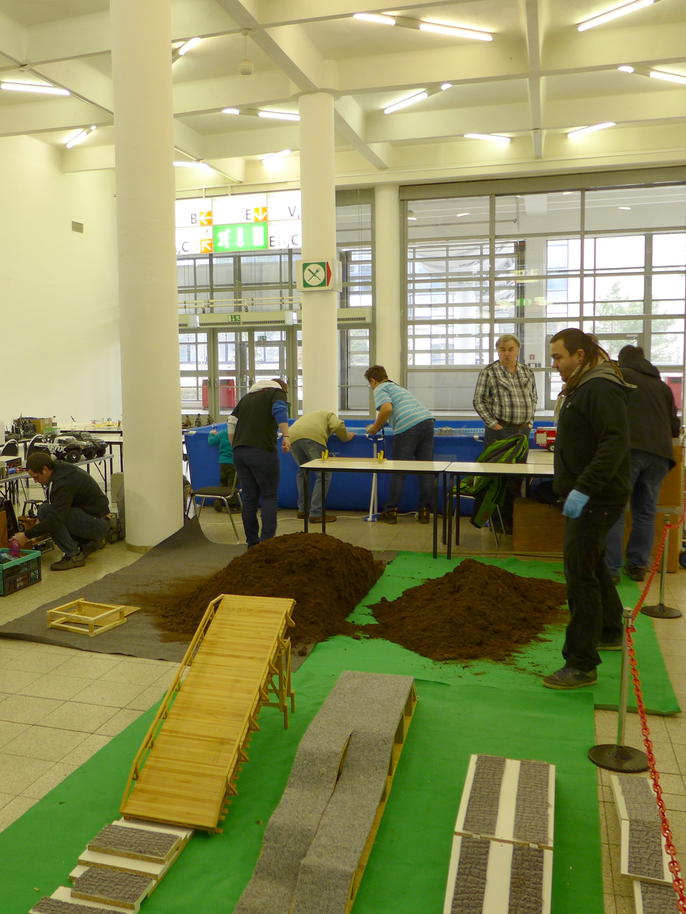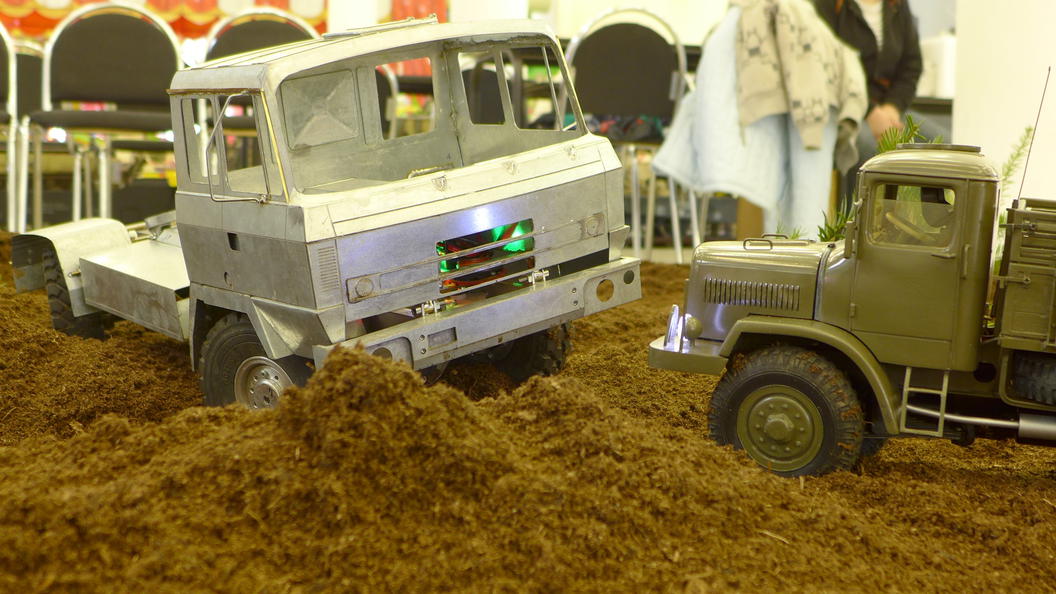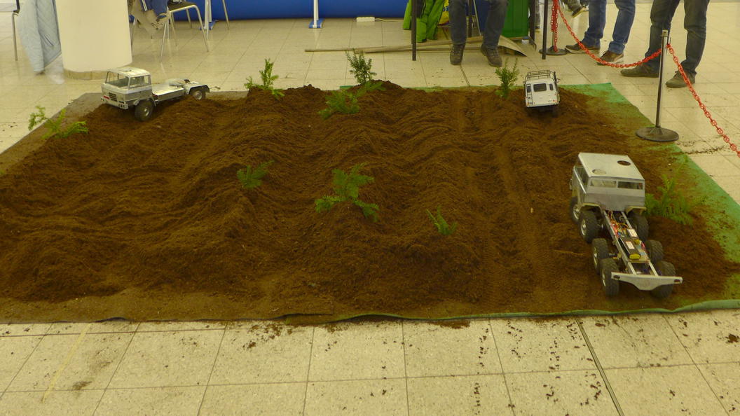 Druhý den bývalo obvykle volněji. Tentokrát byla neděle z mého pohledu lepší než sobota. Vzhledem k tomu, že jsem byl se svými Tatrami na placu sám, transformoval jsem hromadu rašeliny do zvlněné krajiny, která ideálně vyhovovala mým terénním nákladním automobilům. Desetiny (modely v měřítku 1:10) se vrátily z "vyhnanství" u dveří a společně jsme si dobře zajezdili.