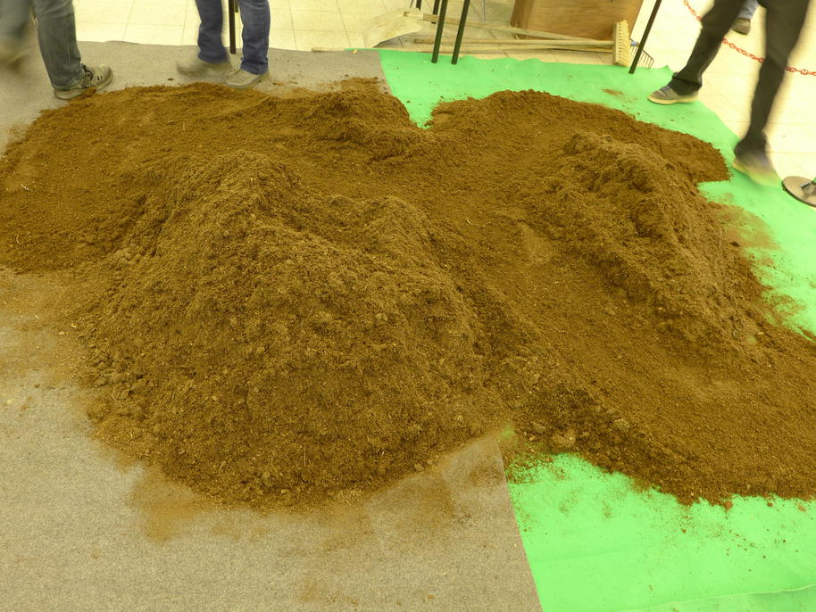 Pak se ledy trochu pohnuly a trialisté směli využít prostor u vstupních dveří hned vedle, čímž se nás tu mačkalo o něco méně. Roztáhli jsme plachtu, v rašelině vytvořili jednoduché cesty a na okraj postavili modelovou boudičku. Do hromádky rašeliny se zakousl nakladač a začal plnit přistavené sklápěčky.