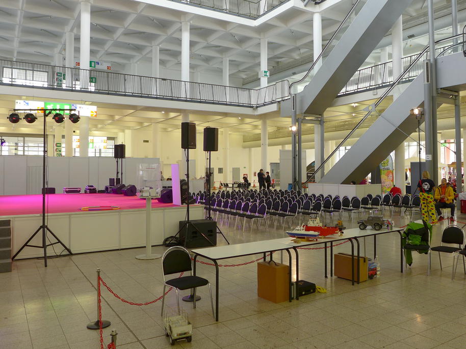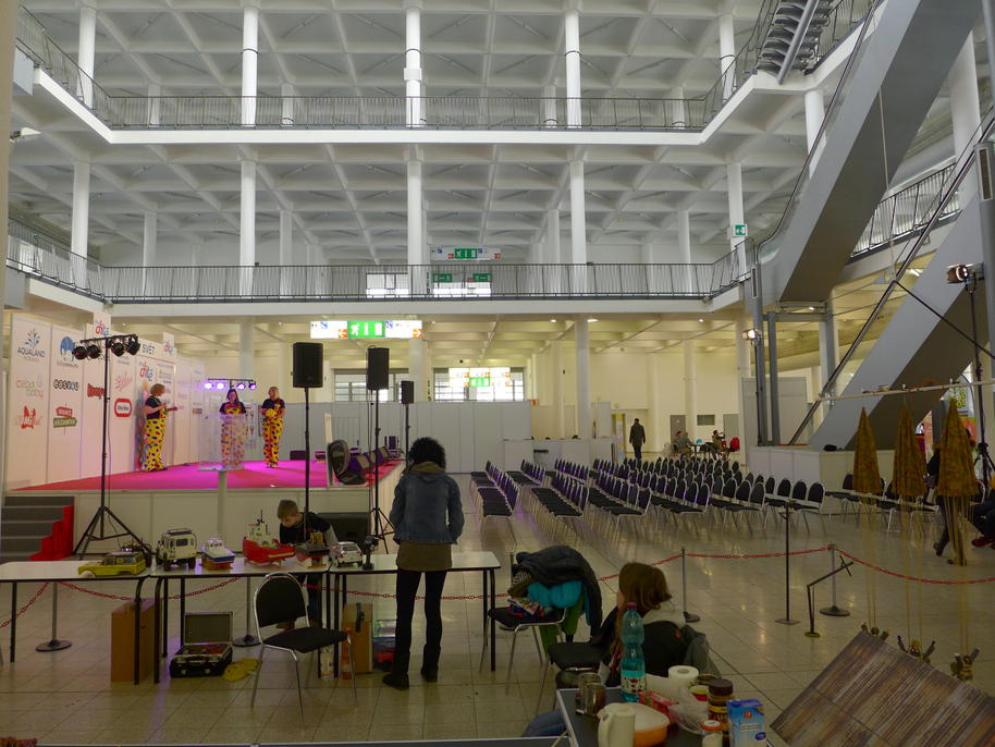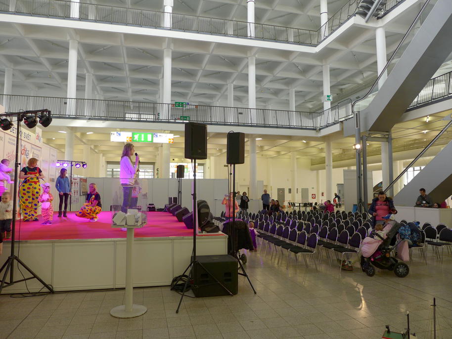 Spolu s námi byly v pavilonu C kolotoče, pouťové atrakce a také pódium se zábavným programem pro malé děti. Sousedilo přímo s naším vyhrazeným prostorem, měli jsme tedy možnost sledovat dění na pódiu. V hledišti byl po celou dobu značný přebytek volných židlí – v době průměrné obsazenosti se tu "tísnilo" odhadem 5 dětí s rodiči. Vrcholem zoufalství však byla nedělní situace, kdy si tři dospělé paní na pódiu házely plyšovou kostkou a hlasitě svou činnost komentovaly lákaje děti, aby se do hry zapojily. Drobný problém byl v tom, že v hledišti nikdo nebyl...