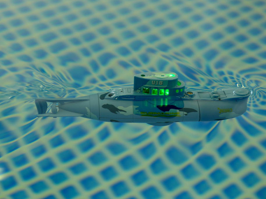 ... v bazénu se proháněly rychlé loďky, tradiční kachní rodinka a malinká ponorka ...