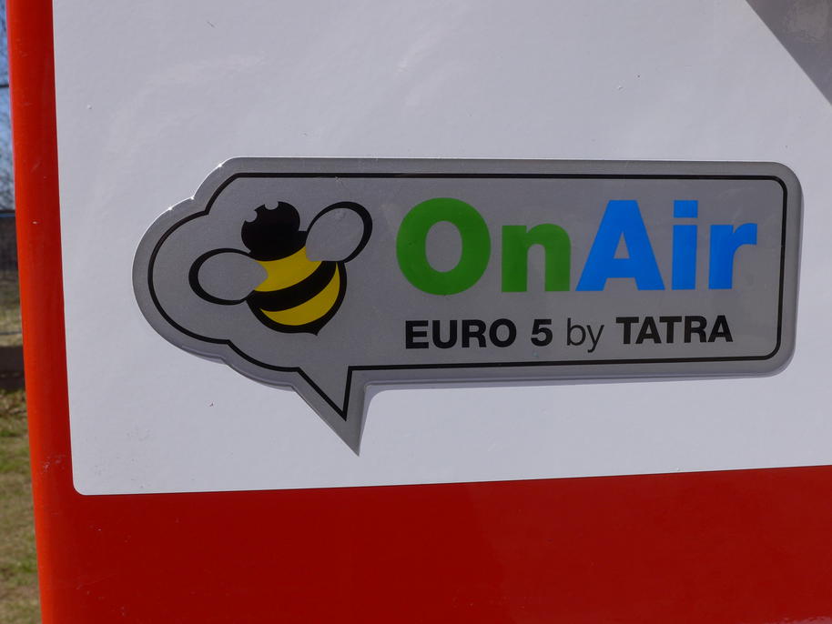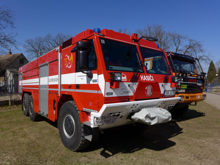 Sestavu kopřivnických strojů po chvilce doplňuje nová hasičská Tatra 815-7 6x6 rovněž s originálním vzduchem chlazeným osmiválcem Tatra On Air EURO5. Připomínám, že splnění eurobuzerace level 5 dokázali v Kopřivnici zvládnout zcela bez použití elektroniky, tento motor tedy při testech "fixlovat" ani nemůže. Hasiči najíždějí k bráně a na druhý pokus opatrně projíždějí do areálu. Dlužno podotknout, že vjezd do areálu je velmi úzký a ani na přilehlé silnici není mnoho místa.
