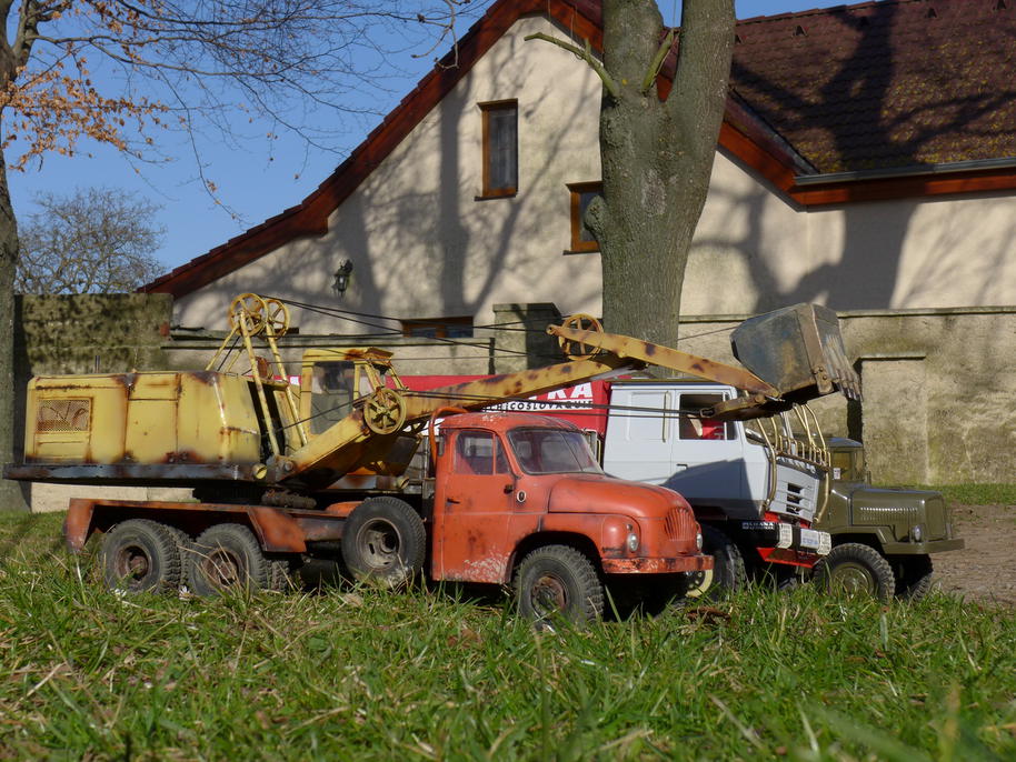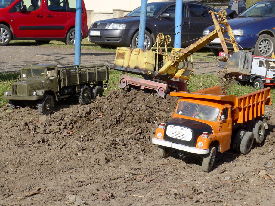 Následovala prezentace našich RC modelů venku za stále krásně slunečného počasí. T130 opět svým zvukem budila značnou pozornost, stejně jako lanový autobagr a rozestavěná dakarka. Dakarské speciály kolegů z RC Truck Rally (často přezdívané ultralajty) lítaly okolo a předváděly divoké drifty a skoky.