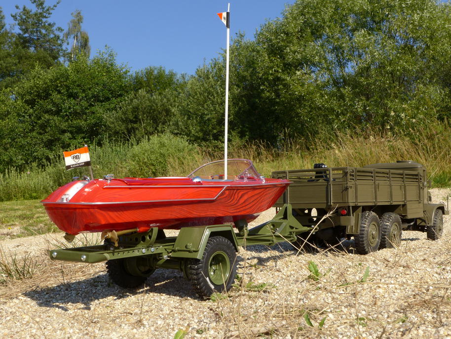 Video začíná úvodní sekvencí, která představuje naši nejnovější hračku – moc pěkně vypadající realistický model RC člunu s označením Flytec HQ2011-1 patřící veliteli vojenského útvaru. Člun je posazen na vojenském podvozku zapojeném za Tatrou 130.