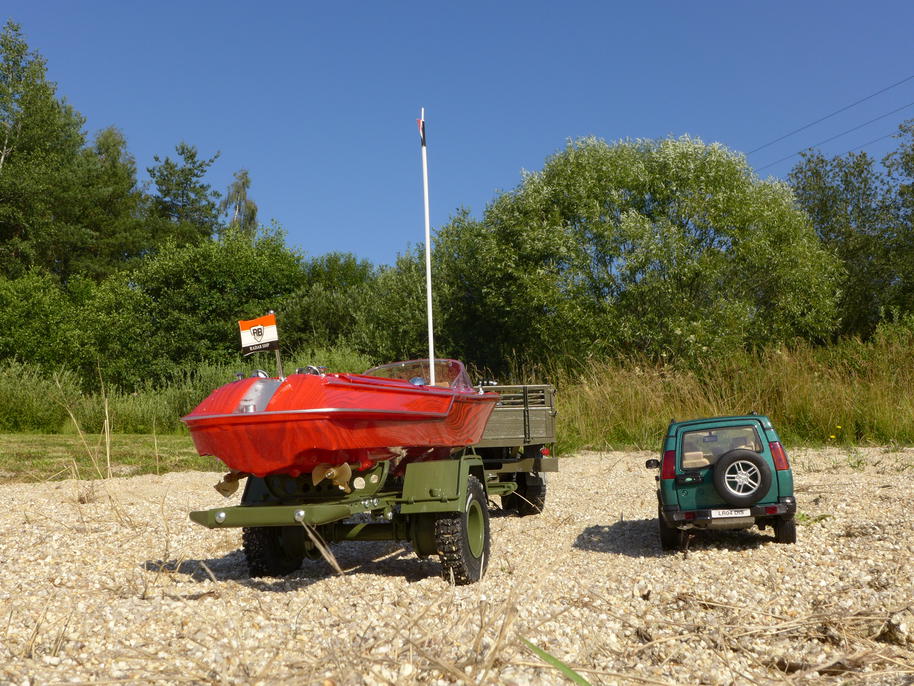 U člunu nám překvapivě vůbec nechybí proporcionální ovládání. Na volné vodní hladině jsme si užívali svobody pohybu a přesné manévrování chybělo pouze v okamžiku, kdy bylo potřeba s člunem najet na přívěs. Na pátý pokus se to podařilo ... a to situaci ztěžoval i slabý vítr. Během natáčení byl člun nejdále asi 35m od vysílačky. Žádné rušení nebo zhoršený příjem jsme nepozorovali. Dosažení větší vzdálenosti nebylo nutné ani účelné – kamera má pouze 10x zoom (což je samo o sobě náročné udržet v ruce i s optickou stabilizací) – ale věřím, že udávaná ovladatelnost modelu do 100m může být pravdivá, zvlášť když se řádně napne prut antény do trubice velkého stožáru.