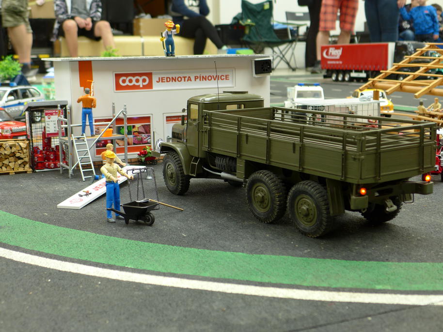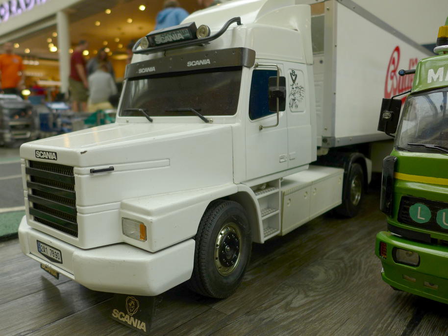 Kromě kupovaných stavebnic tahačů tu bylo množství originálních ručně stavěných modelů. Mezi ně patřila i tato parádní LIAZka. Možná nemá všechny tvary úplně věrné, ale celkově působí učesaným a věrohodným dojmem. Moc se mi líbí (a to i přesto, že to není Tatra).