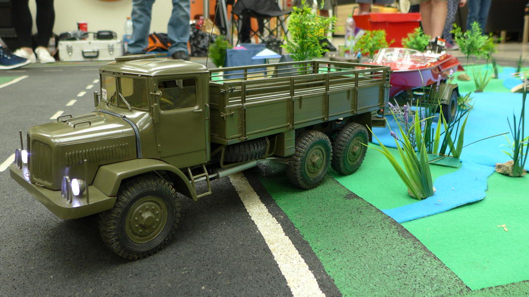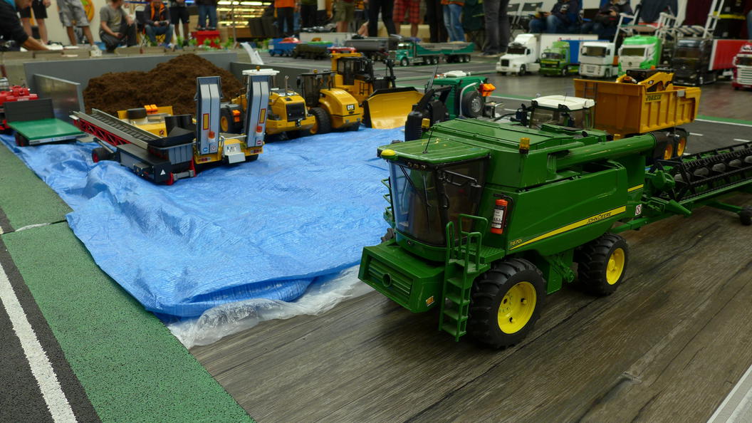 V zemědělské sekci se nacházel jediný terén na akci a také mnoho hraček Bruder, citlivě přestavěných na funkční RC vozidla a stroje – včetně pojízdného kombajnu John Deere. Tento stroj byl pekelně rychlý, s Tatrou jsem ho na silnici neměl šanci dohnat ... asi závodní kombajn :) .
