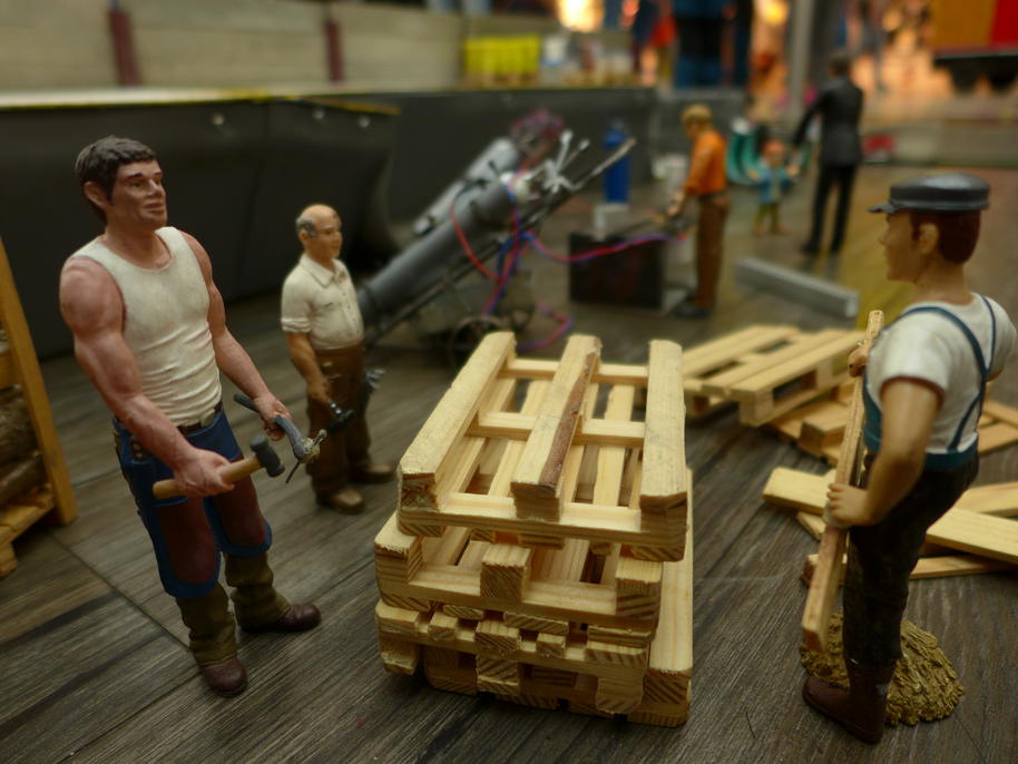Za zdí stavebnin řezal borec autogenem ocelový úhelník a John Rambo pomáhal s výrobou dřevěných palet.