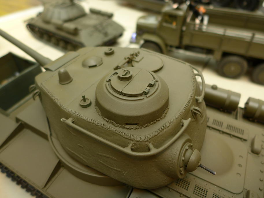 Sekce vojenské techniky v měřítku 1:14 a pohled na detaily tanku KV-2 vytištěné na DLP tiskárně. Řádně jsme s kolegou prodiskutovali čerstvé zkušenosti s DLP tiskem a nesnáze údržby FDM tiskáren. Holt, technické prostředky se stále vyvíjí.
