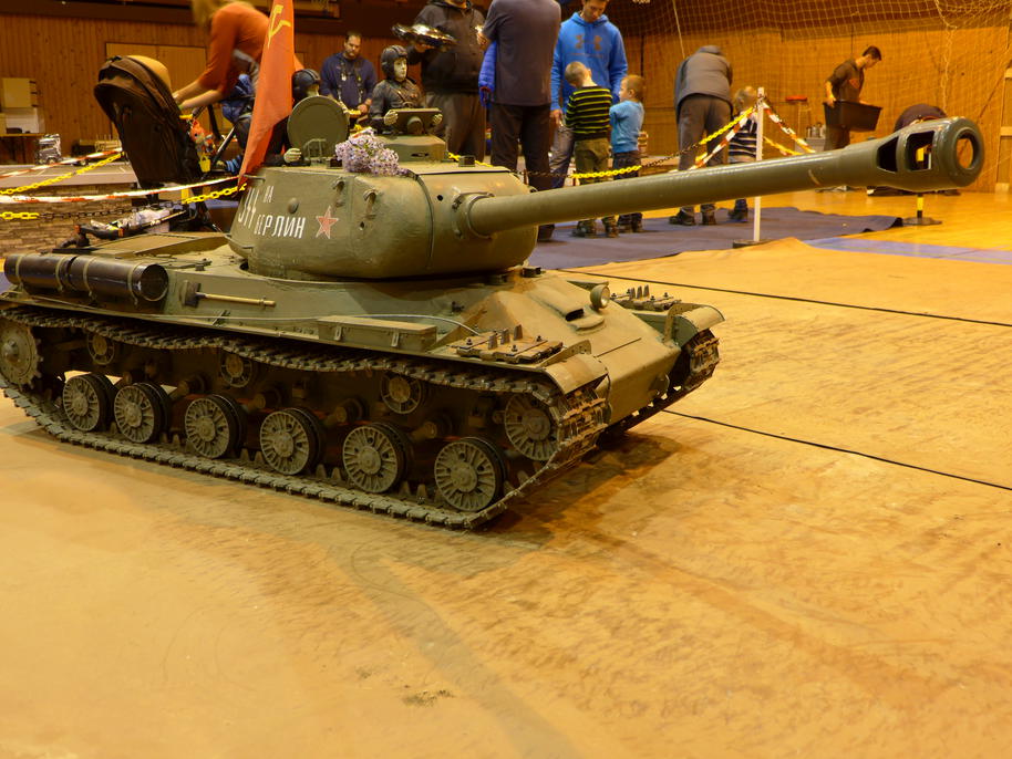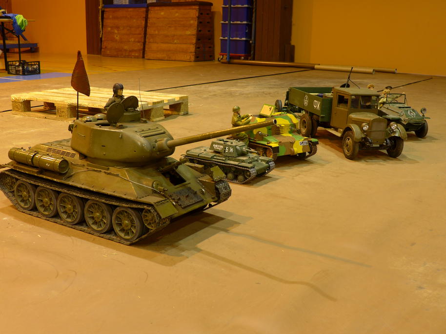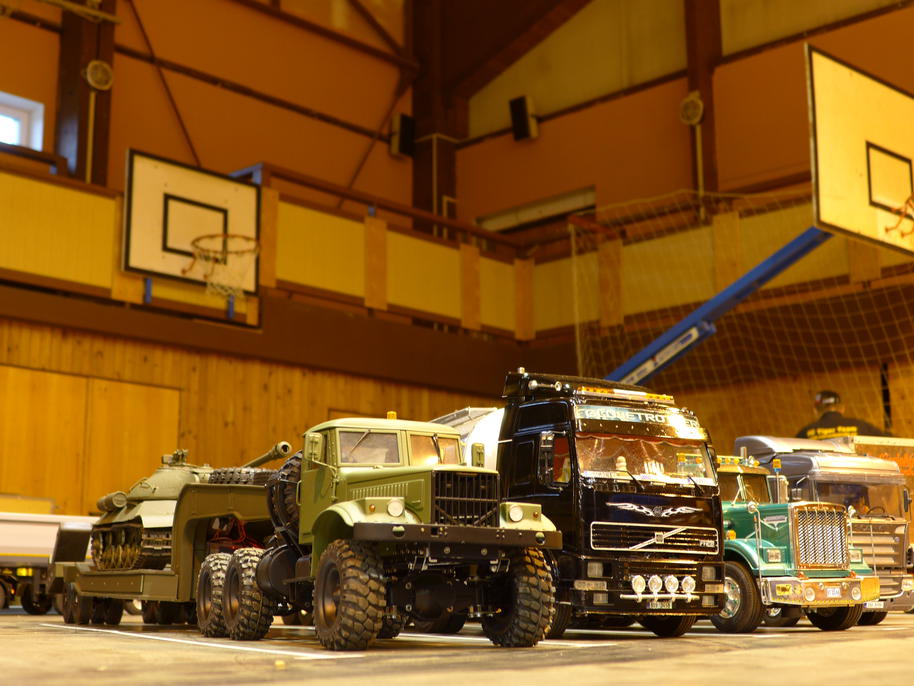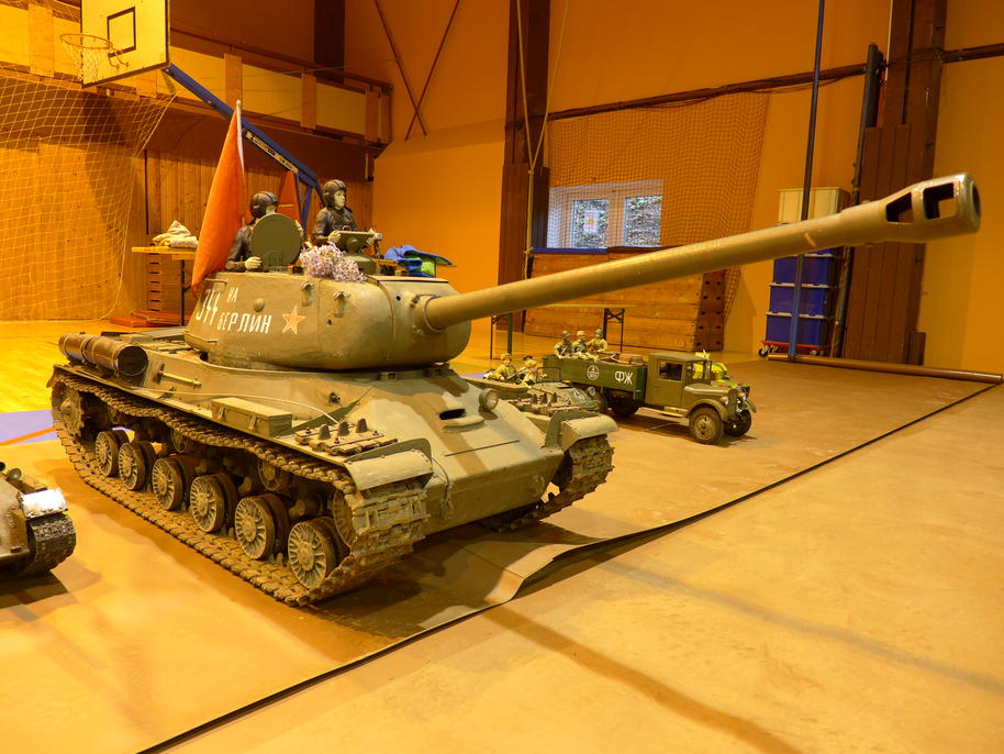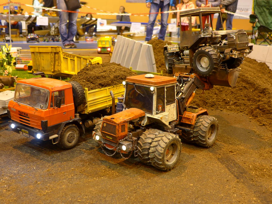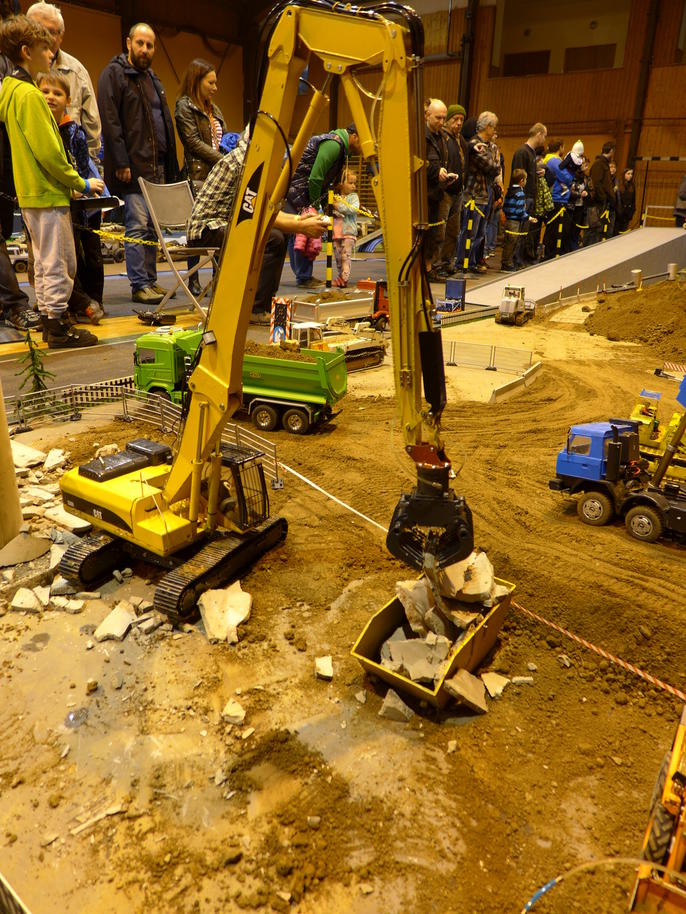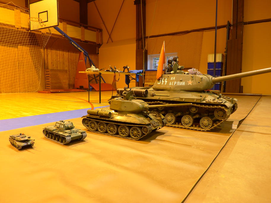 Přípravu modelového staveniště jsem sledoval jen z povzdálí – těch nových a krásných věcí bylo najednou tolik, že jsem nevěděl, co dřív. Druhá polovina haly byla totiž neméně zajímavá. Byla tu speciální sekce pro olbřímí tanky pana Lamky. Podlaha byla poctivě vystlána linem, aby se tanky "nepodepsaly" do parket haly.