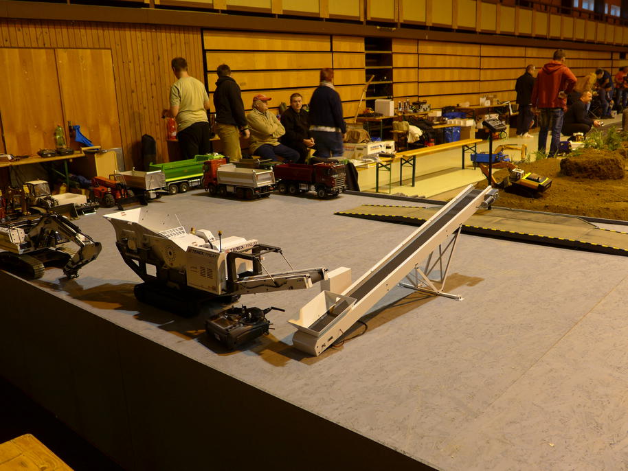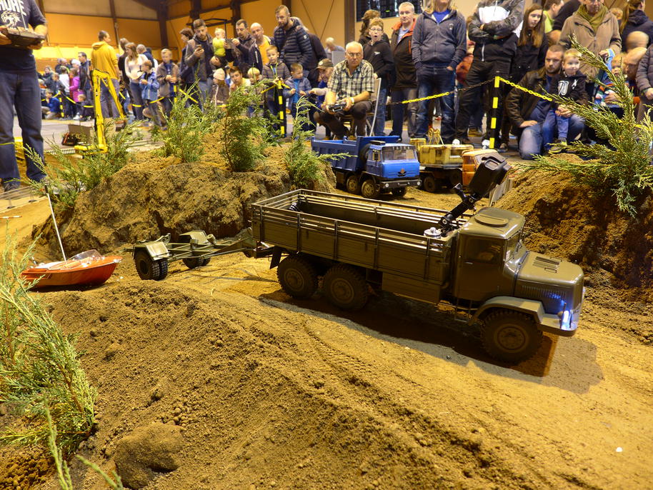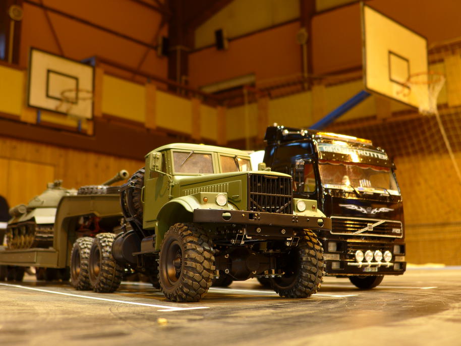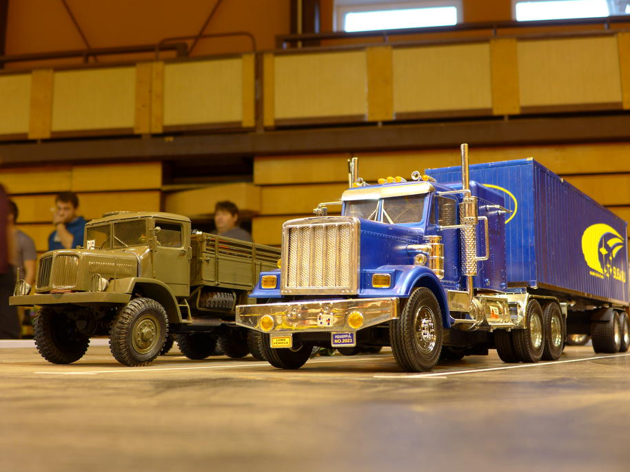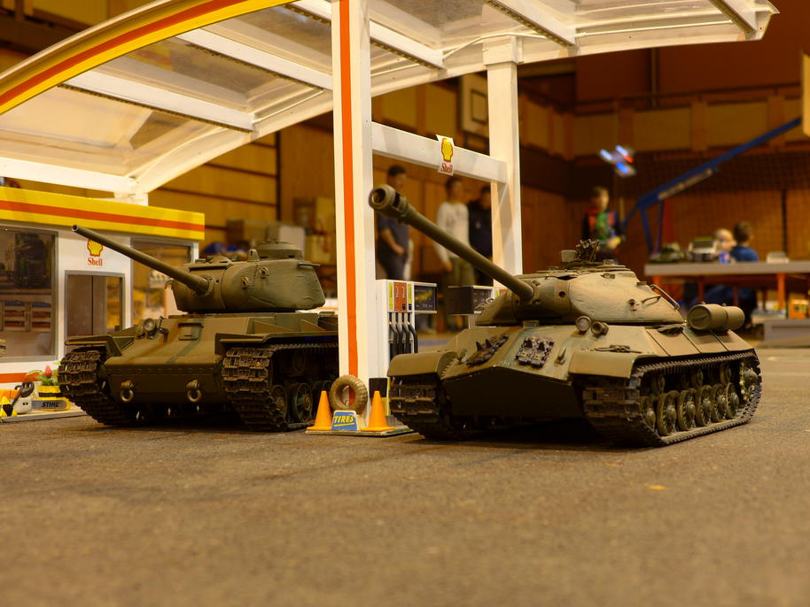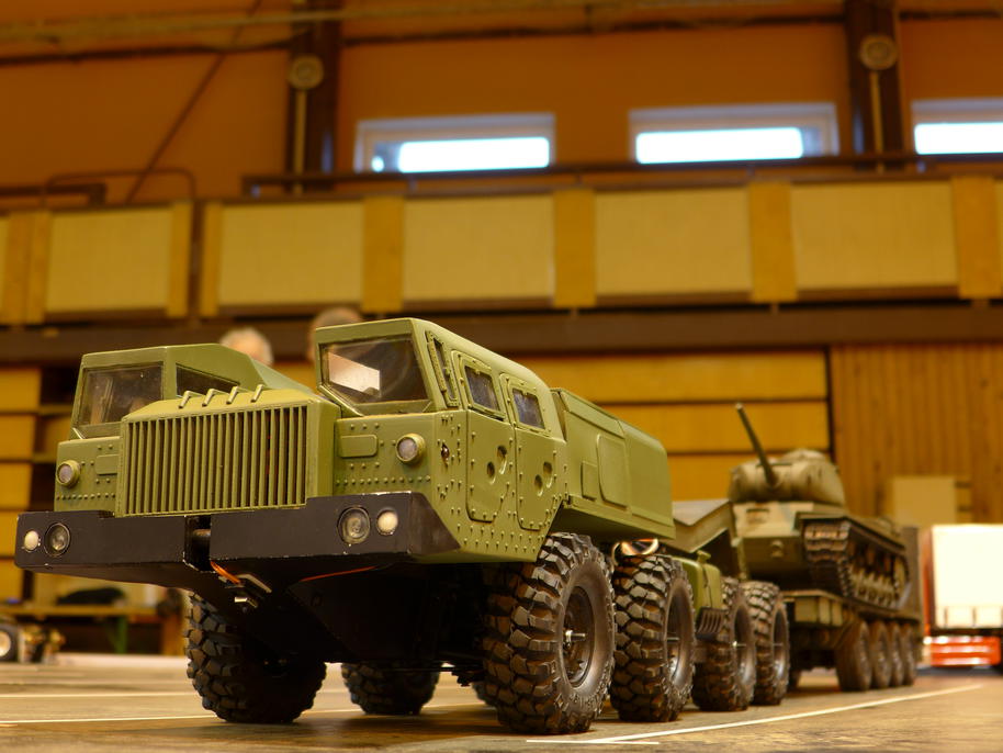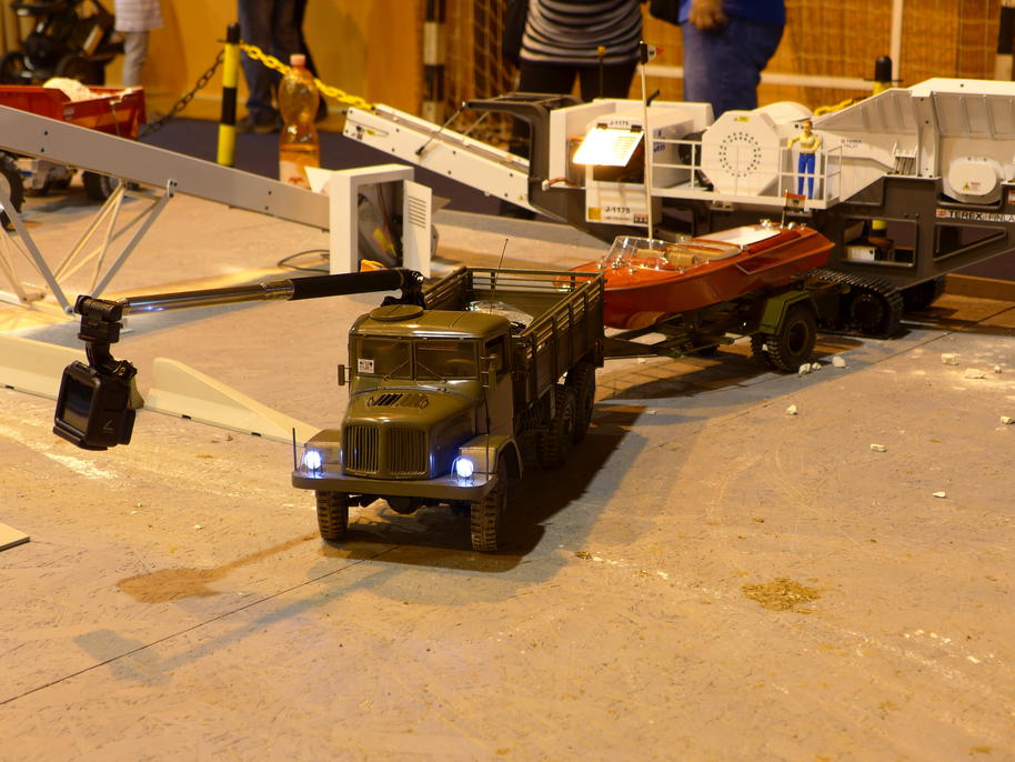 Přípravu modelového staveniště jsem sledoval jen z povzdálí – těch nových a krásných věcí bylo najednou tolik, že jsem nevěděl, co dřív. Druhá polovina haly byla totiž neméně zajímavá. Byla tu speciální sekce pro olbřímí tanky pana Lamky. Podlaha byla poctivě vystlána linem, aby se tanky "nepodepsaly" do parket haly.