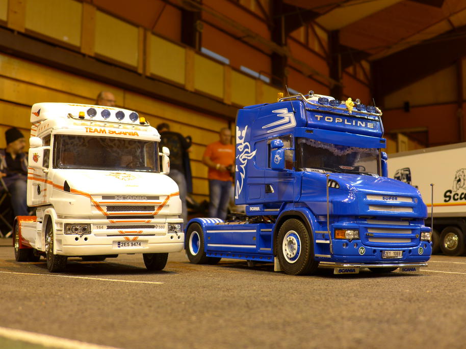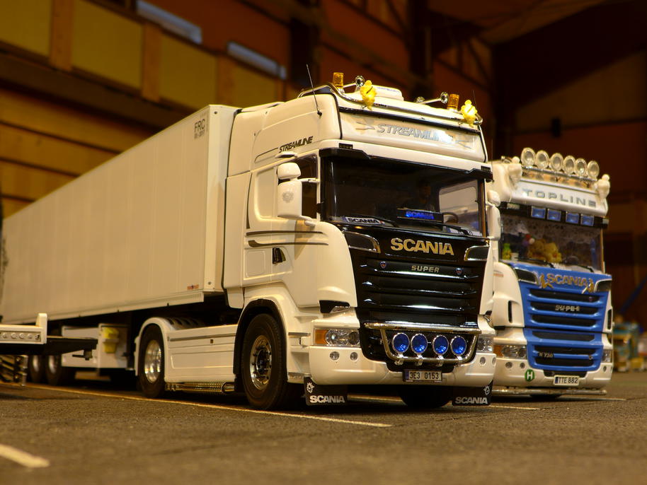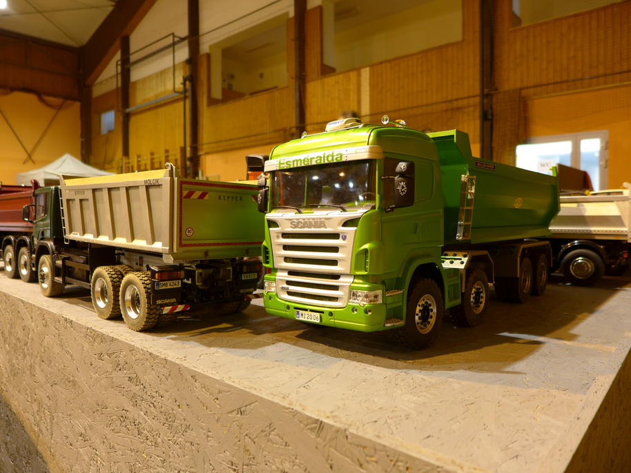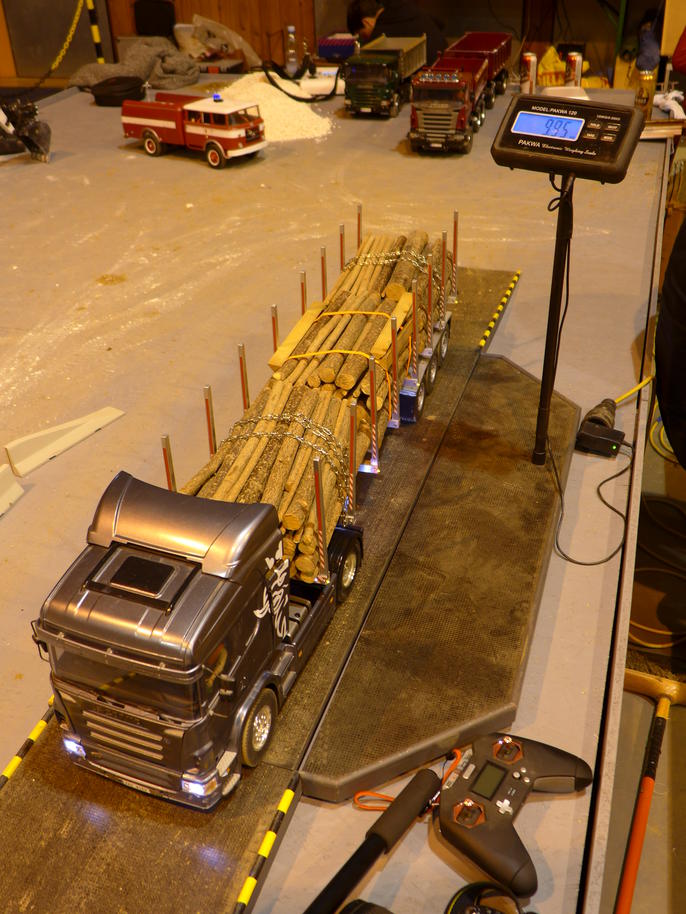 Nejsilnější zastoupení měla opět kolová technika, proto byla letos celá polovina sportovní haly věnována nákladním automobilům a stavebním strojům. K dispozici byly hned dvě zvýšené rampy. Ta blíže vstupu do haly sloužila jako demonstrační prostor nového drtiče kamení a také jako parkoviště stavebních strojů. Byla tu také váha, kterou známe z minulých ročníků. Na fotce tahač Scania s návěsem dřeva váží pěkných 25 tun.
