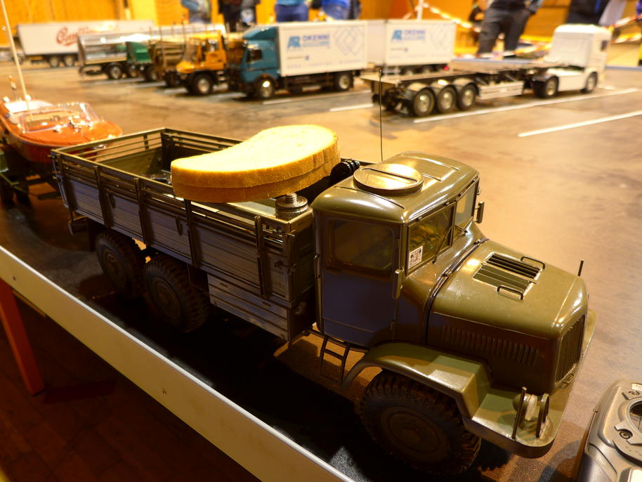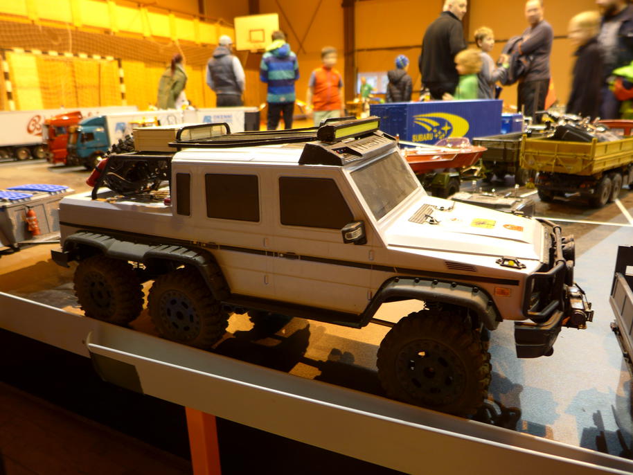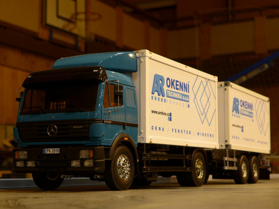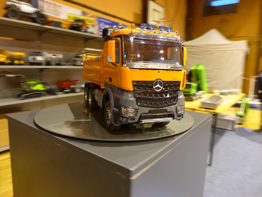 Prodejní a prezentační stánek domažlického RC klubu nabízel kromě této sklápěčky Mercedes množství kvalitně zpracovaných modelů a doplňků.