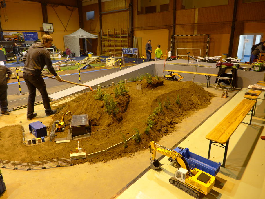Tradičně nechyběla hromada správně sypké i vlhké hlíny – krásně se nechala ujezdit i bagrovat. Hned ráno rozdal pan stavbyvedoucí úkoly. Jelikož tu letos nebyl přítomen druhý pan stavbyvedoucí, probíhala tvorba modelového staveniště bez vzájemného pošťuchování.