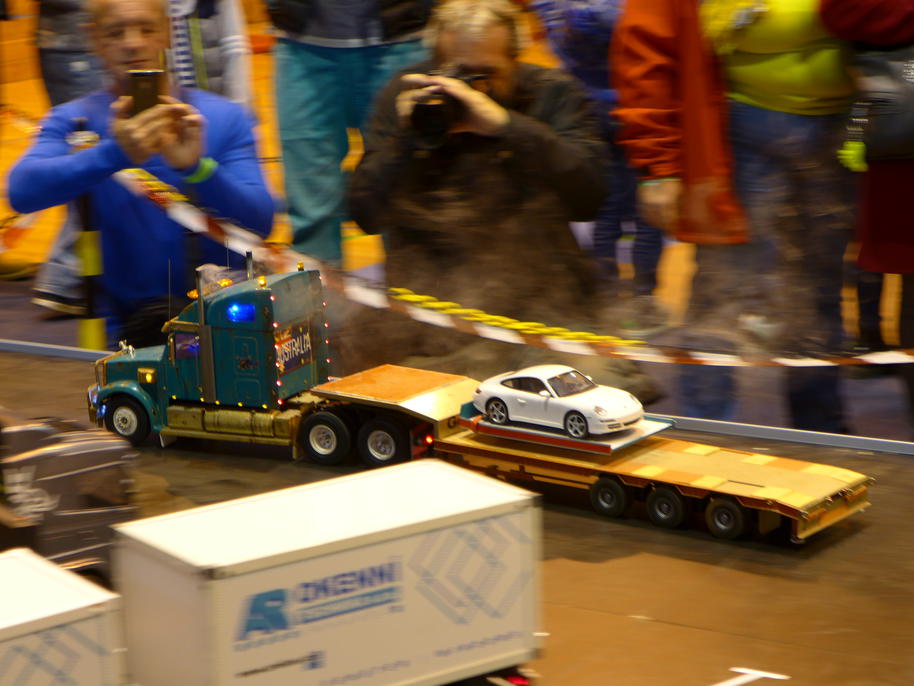 Vzdálenější rampa tvořila velké parkoviště především pro silniční nákladní automobily. Zejména prázdné tahače výjezd zvládaly s obtížemi a to v hale nebylo mokro natož nasněženo, přestože silnice brázdil i Unimog se sněžnou radlicí v pracovní poloze "proklatě nízko" :) . Naproti tomu plně-pohonné terénní speciály výjezdy i sjezdy zvládaly jako vždy s přehledem.