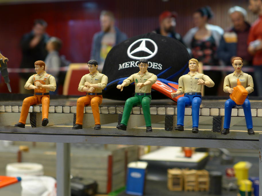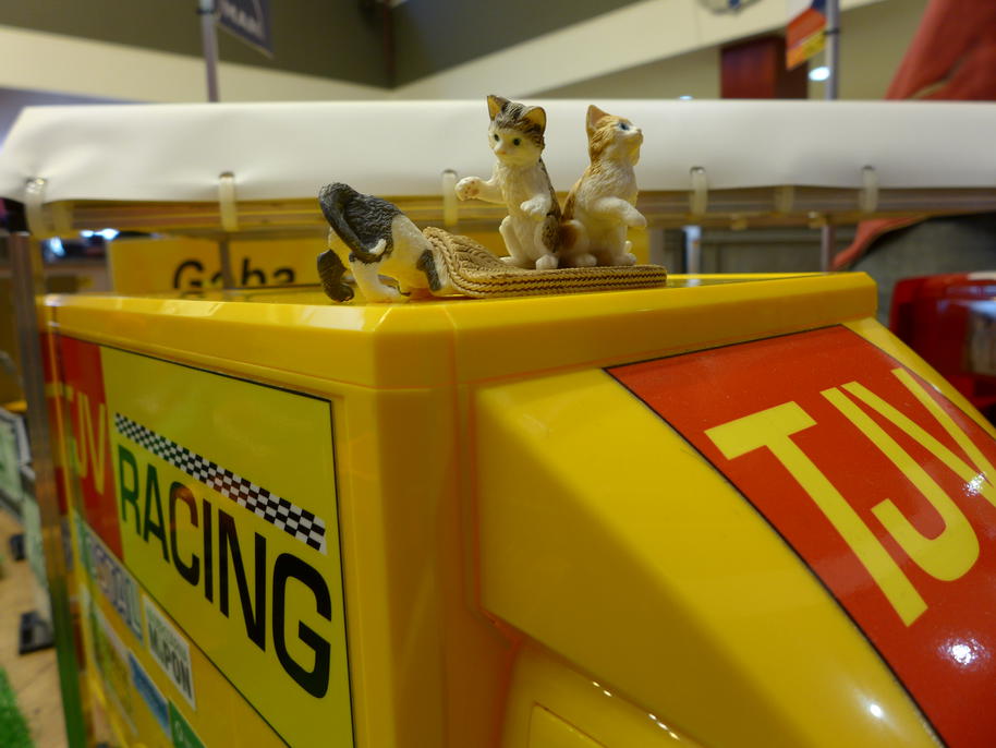 Tradičně vymazlené depo TJV Racing s množstvím originálních detailů. Koťátka na střeše karavanu zkoumají pohozenou rohož. Společensky unavený mechanik si nechává uplynulou noc řádně projít hlavou.