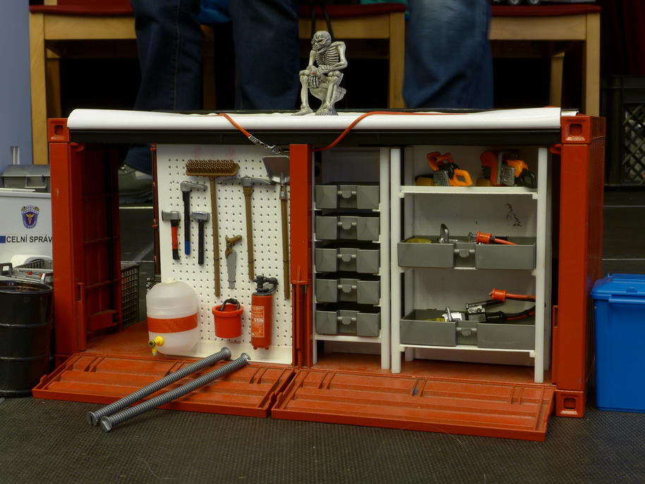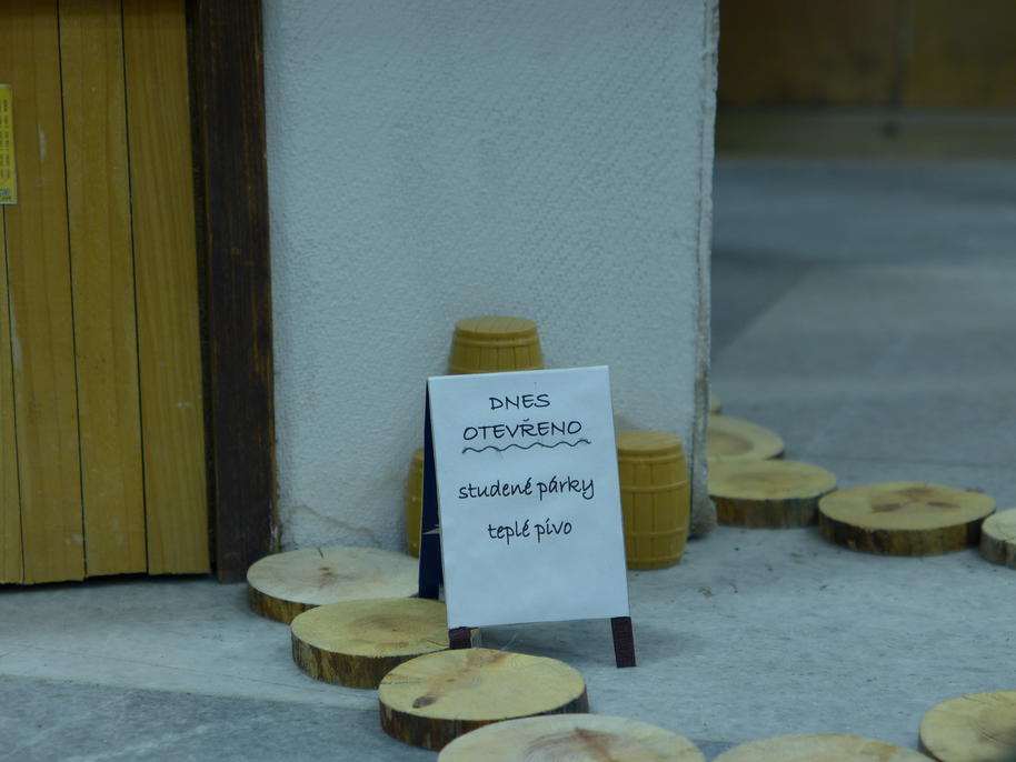Nad skladem materiálu dlí jeden ze zakládajících členů hasičského sboru ... ve značně pokročilém stadiu rozkladu :) . Hned vedle hasičárny byla improvizovaná prodejna propan-butanových lahví – holt bezpečnost nade vše :) .
