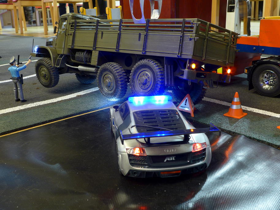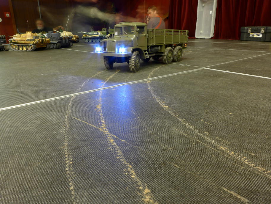 Já osobně jsem se snažil stát mimo modelový terén, ale znovu opakuji – Tatra má horší příjem signálu. V rakovnickém sále byl příjem signálu překvapivě dobrý, mohl jsem téměř řídit Tatru z pódia, tedy dostřel více než 4m, a to i v případě, kdy měla za kabinou kameru. Jen v jednom místě kovová konstrukce na balkóně signál rušila. S ohledem na překážky na silnici jsem však volil obíhání modelového prostředí (abych viděl před auto), případně jsem stál uprostřed.
