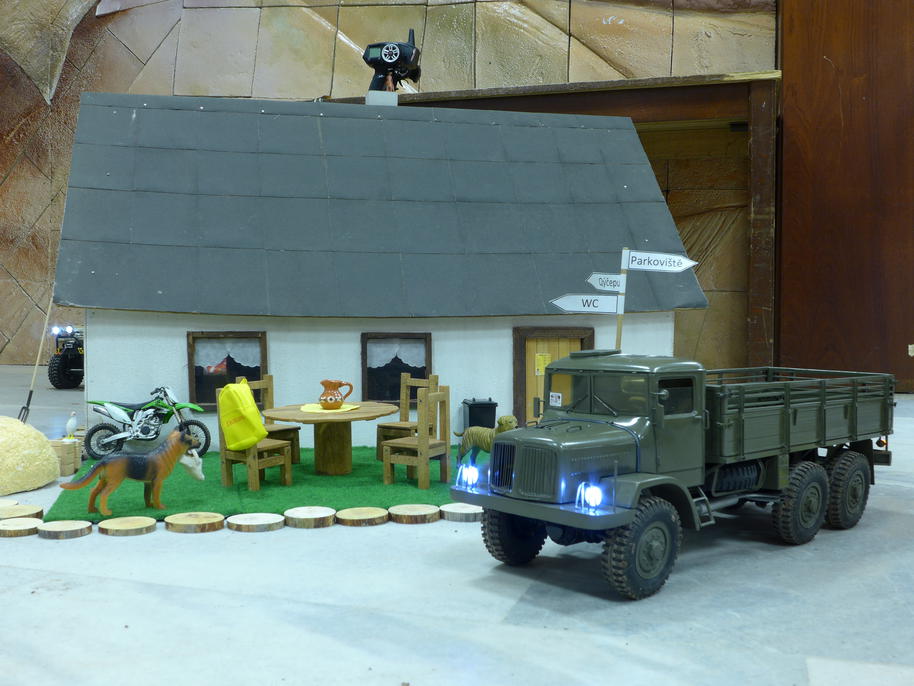 Pod sálem byla ještě jedna prezentace, kde se proháněly RC4X4 speciály. Dověděl jsem se o tom až později odpoledne a hned jsem se tam s Tatrou vydal. Musel (chtěl) jsem chvilku počkat, než dojezdí děti, které měly expediční vozidla půjčena. Jakmile bylo na hlíně bezpečno, vydal jsem se s Tatrou na projížďku.