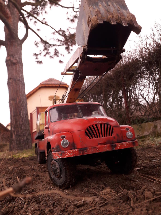 Při dnešních testech se ukázalo několik záležitostí – za prvé – při bagrování může zůstat motor Tatry nastartovaný. To je velmi příjemné a mohlo by to aspoň částečně simulovat samostatný motor v bagrovací nástavbě.