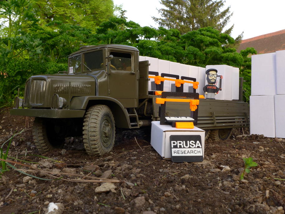 Od května máme tu čest pracovat pro firmu Prusa Research – aneb když je třeba bezpečně doručit náklad někam, kde běžné nákladní automobily neprojedou ;) . Sedm tun 3D tiskáren se připravuje k expedici, pan šéf osobně dohlíží na cenný náklad.