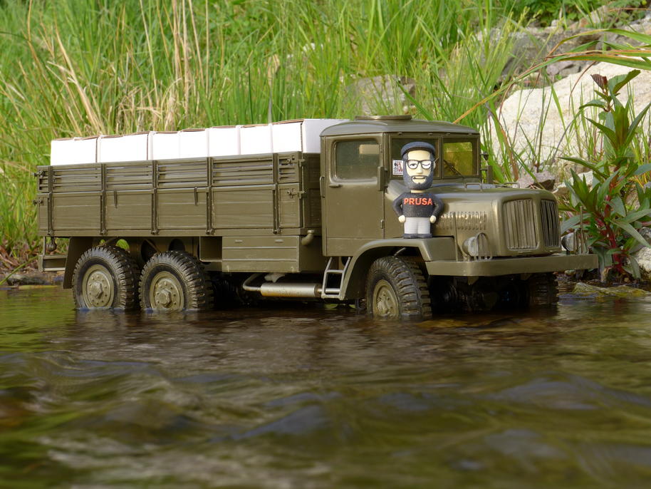 A přestože Tatra díky svému dokonalému podvozku přepravila náklad v kartonových bednách zcela nepoškozený, přeci jen asi budeme pro další spolupráci upřednostňovat pevnější bedny dřevěné, stylově vyrobené metodou 3D tisku ;) .