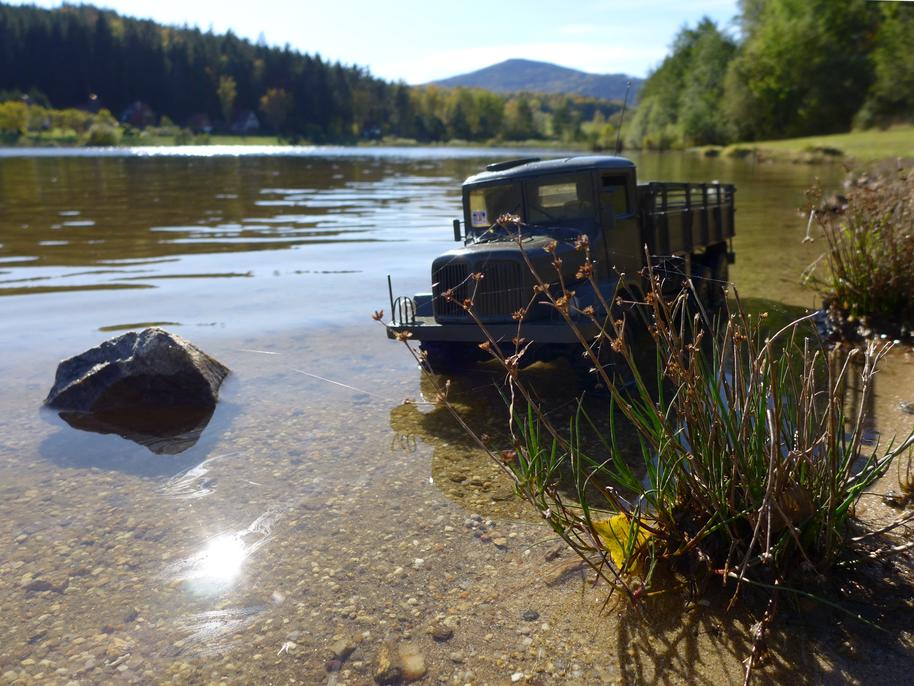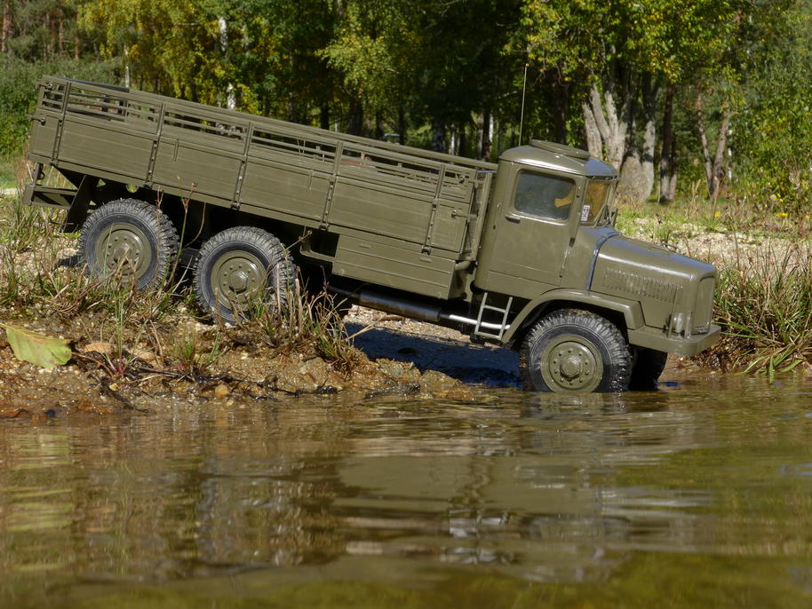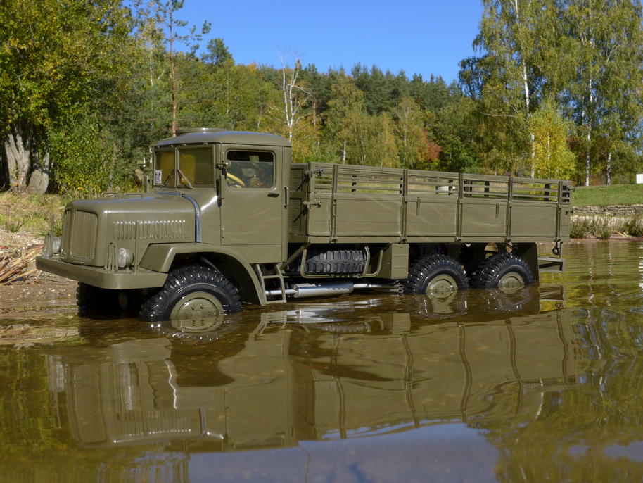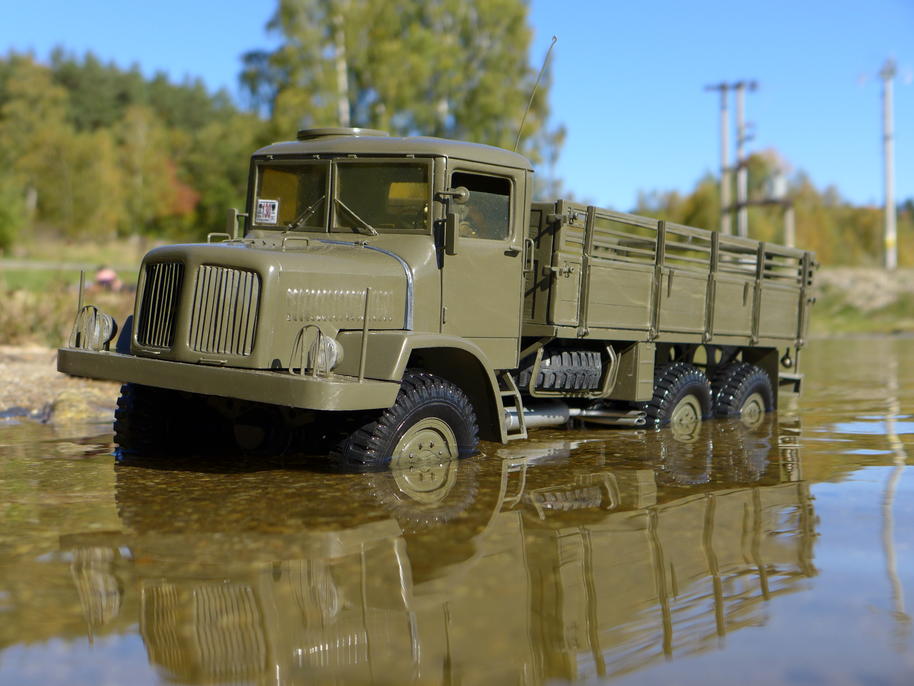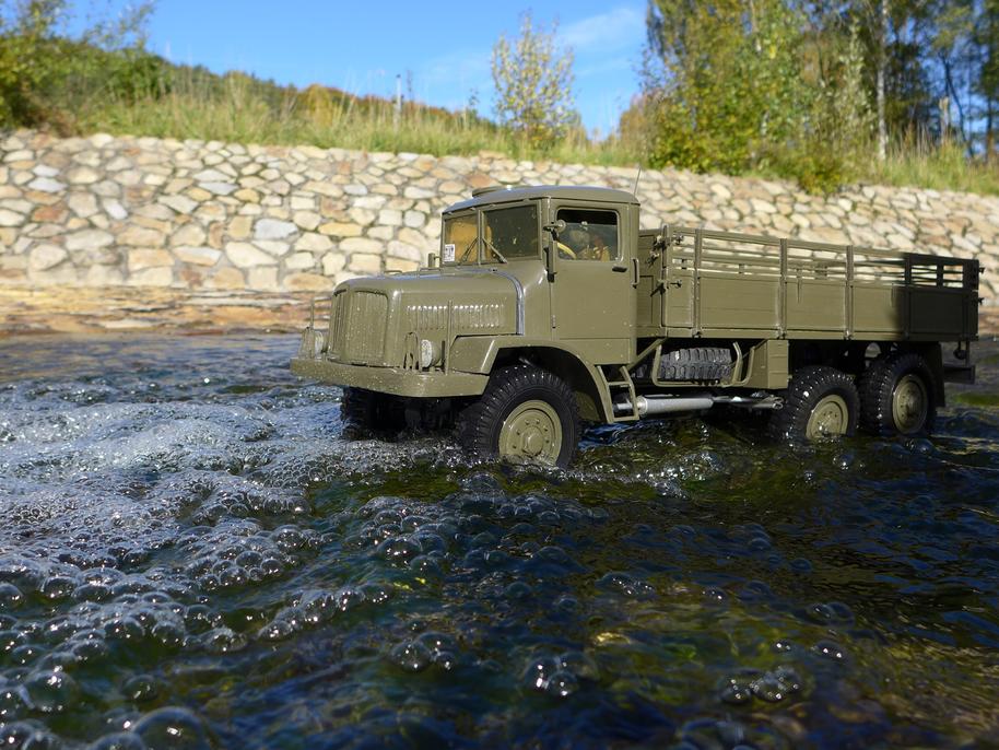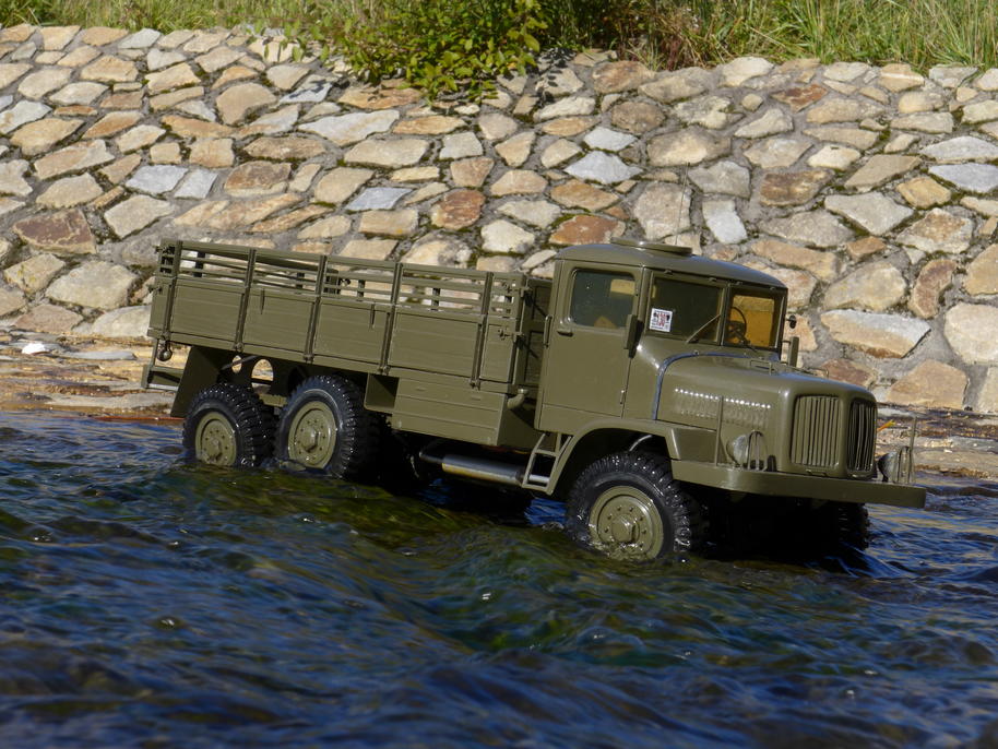 Tatra už je zase ve vodě až po rouru... podvozek potřebuje umýt, je ještě plný písku po kopřivnické akci .