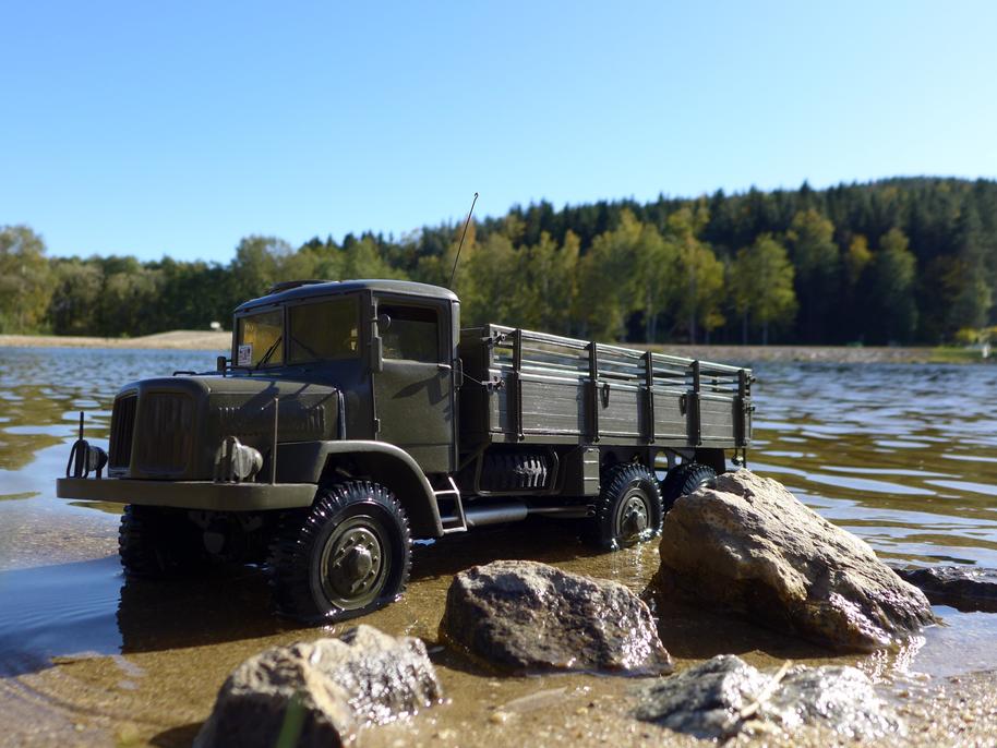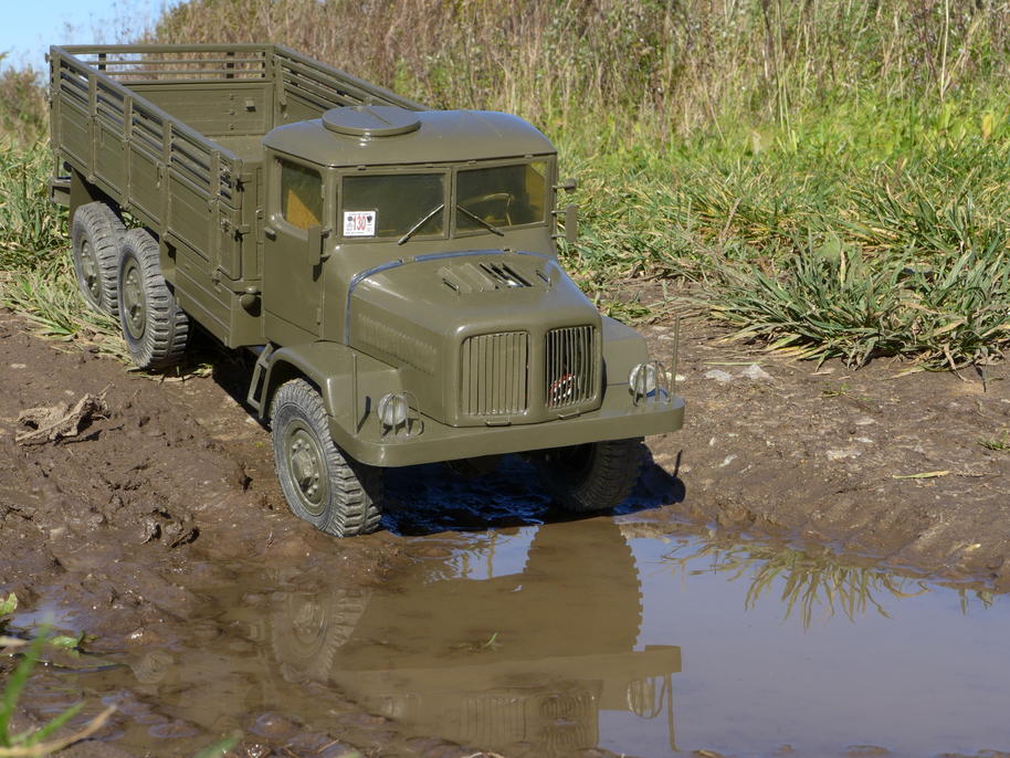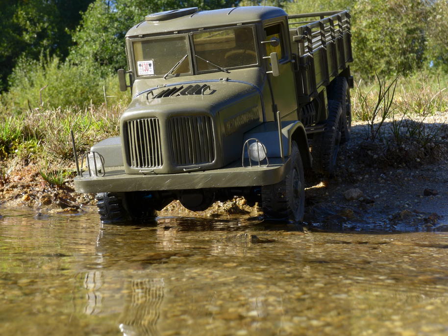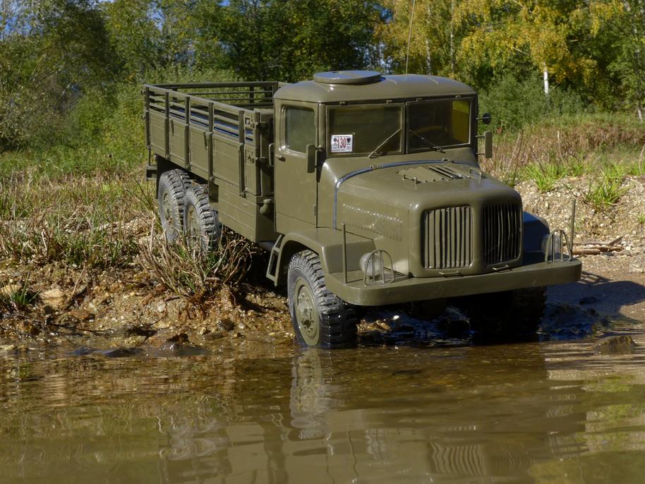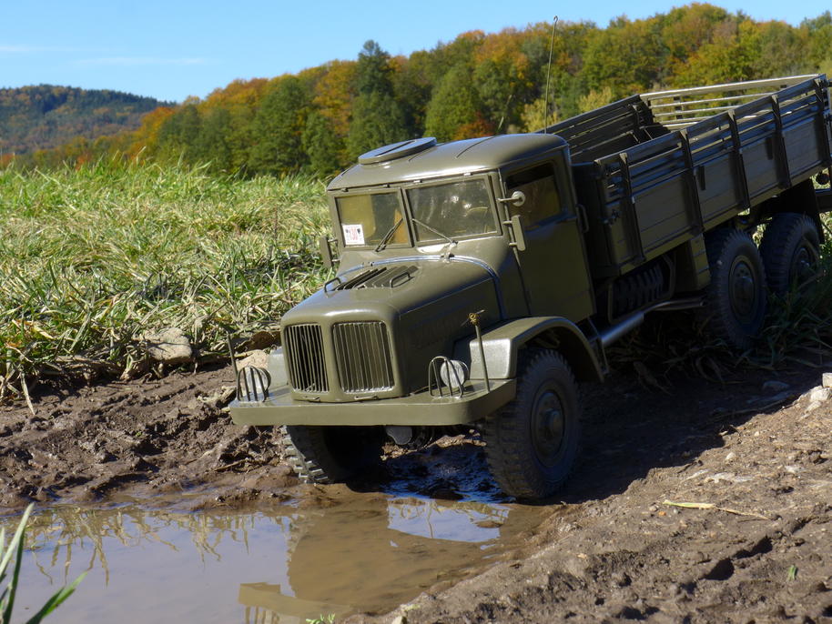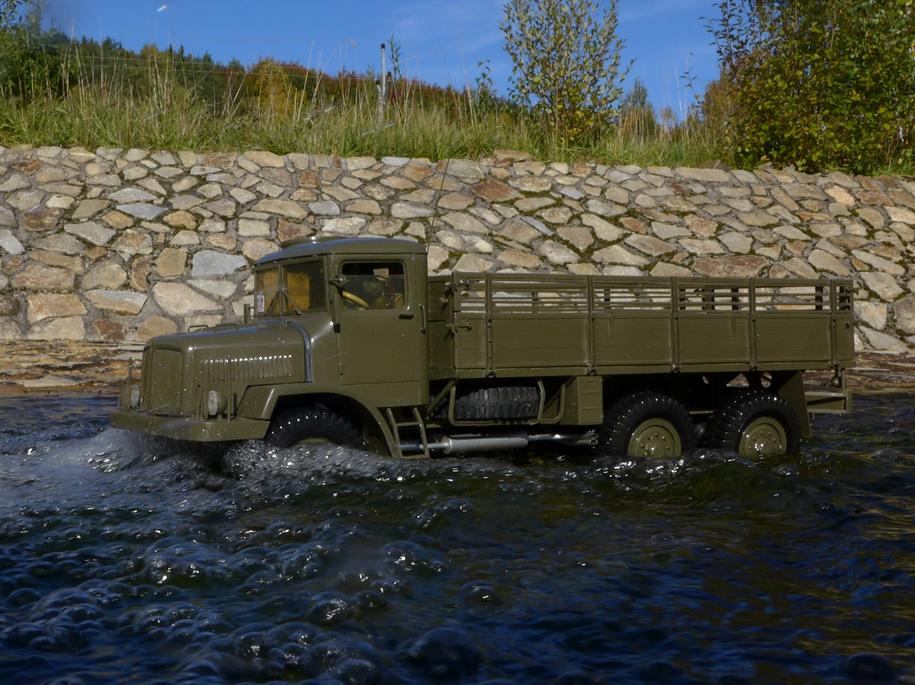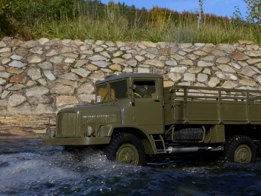 Tatra už je zase ve vodě až po rouru... podvozek potřebuje umýt, je ještě plný písku po kopřivnické akci .