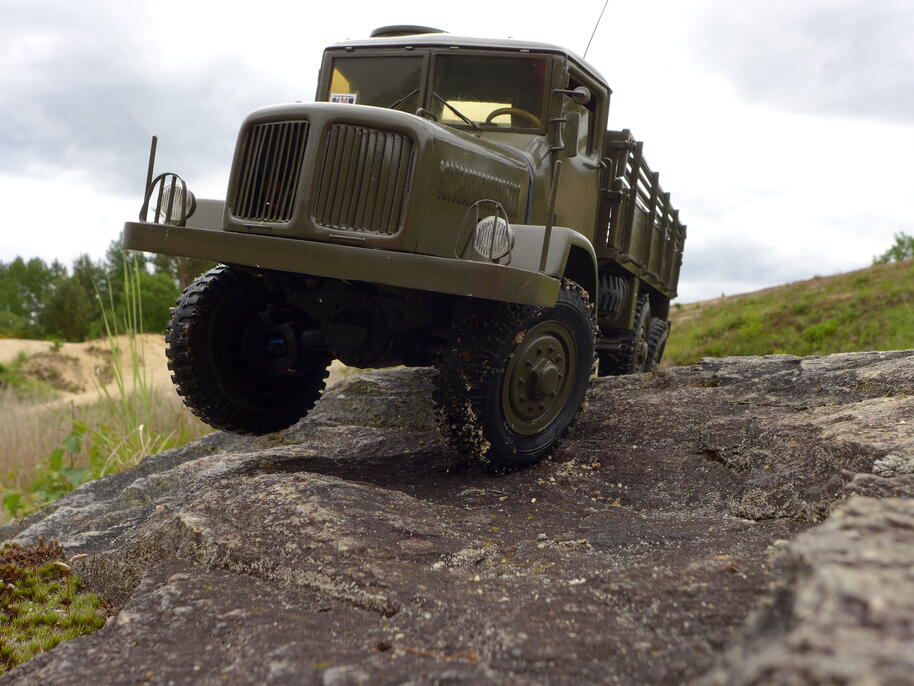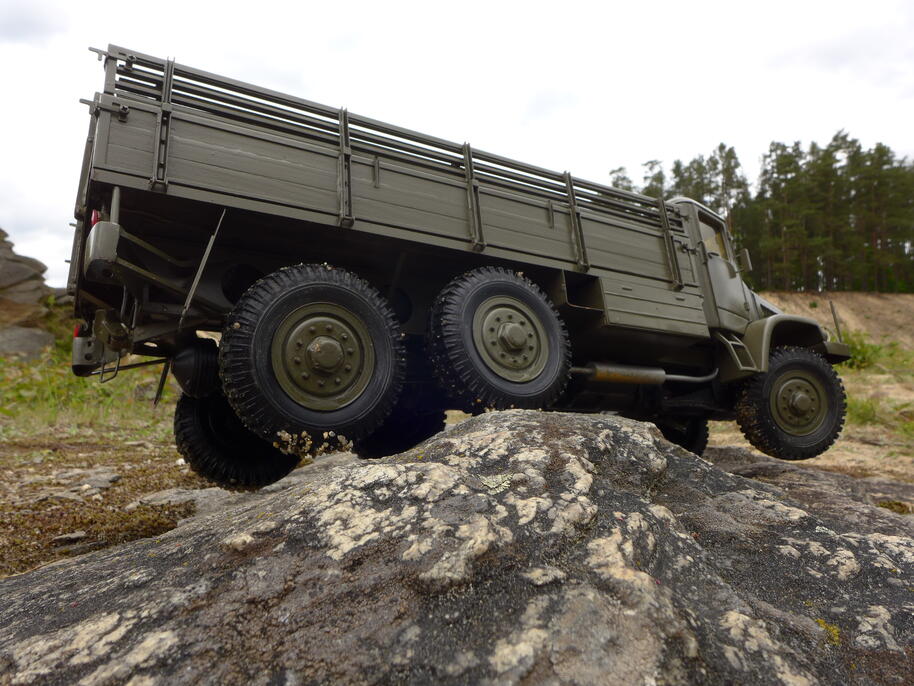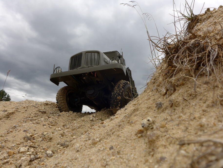 V sypkém písku na mírném svahu jsem prověřoval tvrzení, že velmi pomalé otáčení koly může za nějakou dobu částečně zahrabané auto samo vyprostit. Na tuto techniku mě upozornilo jedno australské video, kde autor nechal v písku zahrabanou (skutečnou) Toyotu Land Cruiser na volnoběh a malou jedničku pomalu točit koly tak dlouho, až se sama dostala ven. Bylo to velmi zajímavé a poučné. Nyní mohu potvrdit, že totéž se mi dařilo se sto-třicítkou. Vyžaduje to ovšem opravdu delikátní dávkování plynu, jakékoli rychlejší otočení koly celý efekt anuluje a z Tatry se stane vrtná souprava.