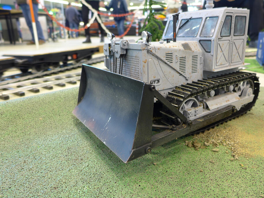 Nedělní dopoledne jsme věnovali natočení scénky s krásným modelem buldozeru ČTZ T-100. Video začíná startem pomocného benzínového motoru, který po chvilce roztáčí mohutný pomaloběžný naftový čtyřválec buldozeru. S typickým duněním se buldozer dává do pohybu. Nejprve přihrne zeminu k bagru a pak začne s přípravou podjezdu pod mostem.