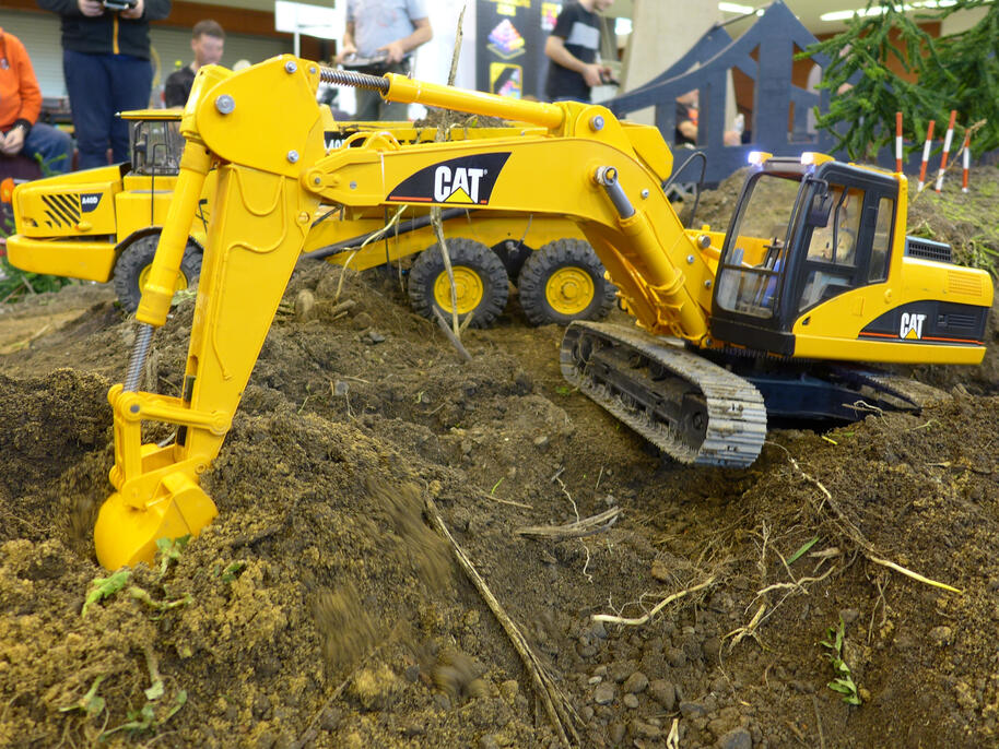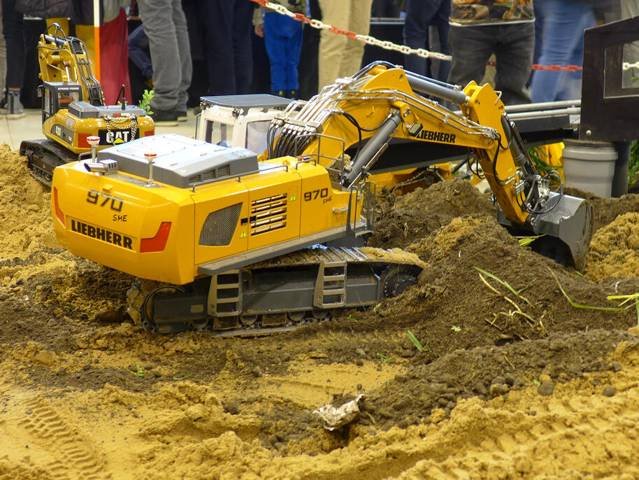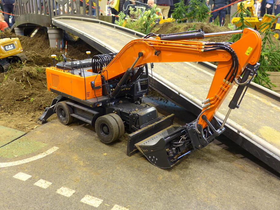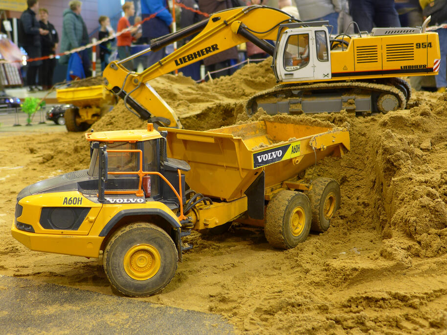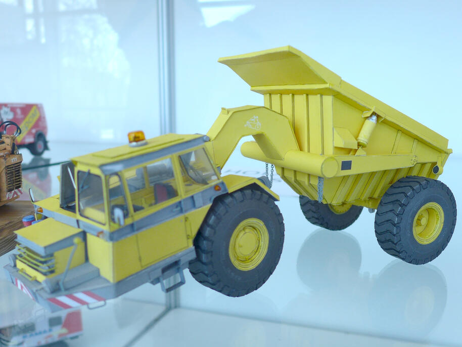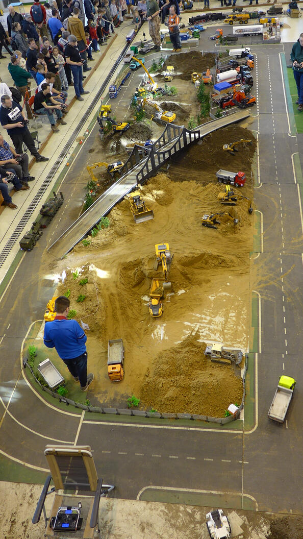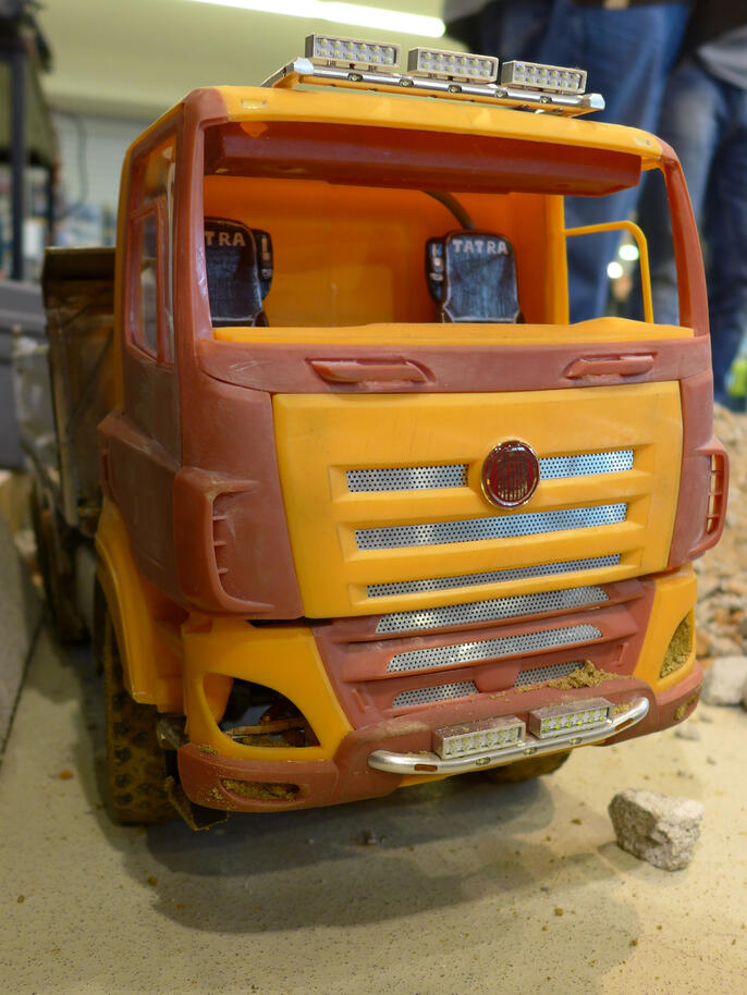 Postupně jsem si začal všímat, že z nějakého důvodu byla tato akce trochu jiná než si ji pamatuji z doby před třemi lety. Na modelové ploše se pohybovalo množství věčně hladových velkoobjemových sklápěček – a tím myslím nejen takové ty specializované terénní kolové dumpery Volvo, Terex, CAT apod., ale i sklápěčky na silničních osmikolových podvozcích Volvo a Benz a několik souprav tahačů se sklopným návěsem. Často jezdily prázdné, neboť ani podobně přemnožené bagry nedokázaly tak velké množství přepravní techniky plynule zásobovat. Buldozery po různu postávaly po okolí a vrhaly se na čerstvě přivezený materiál jak čmeláci na med . Produkci kopřivnické vozovky zastupovaly sklápěčky na podvozcích Tatra 158 Phoenix 6x6, Tatra 163 Jamal 6x6, Tatra 815 TerrNo1 8x8 a moje historická sto-třicítka.