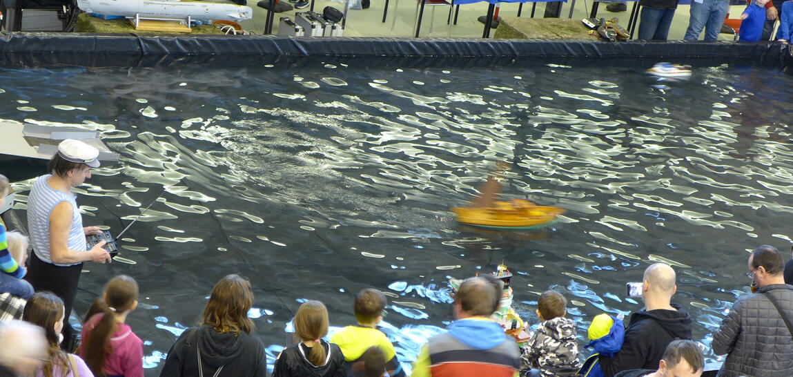 Lodě a námořní technika – velkou část expozice v přízemí zabíral velký bazén, kde se po celou dobu výstavy konaly prezentace různých plovoucích modelů včetně ponorek. Občas bylo slyšet i výstřely – to když probíhala simulovaná námořní bitva.